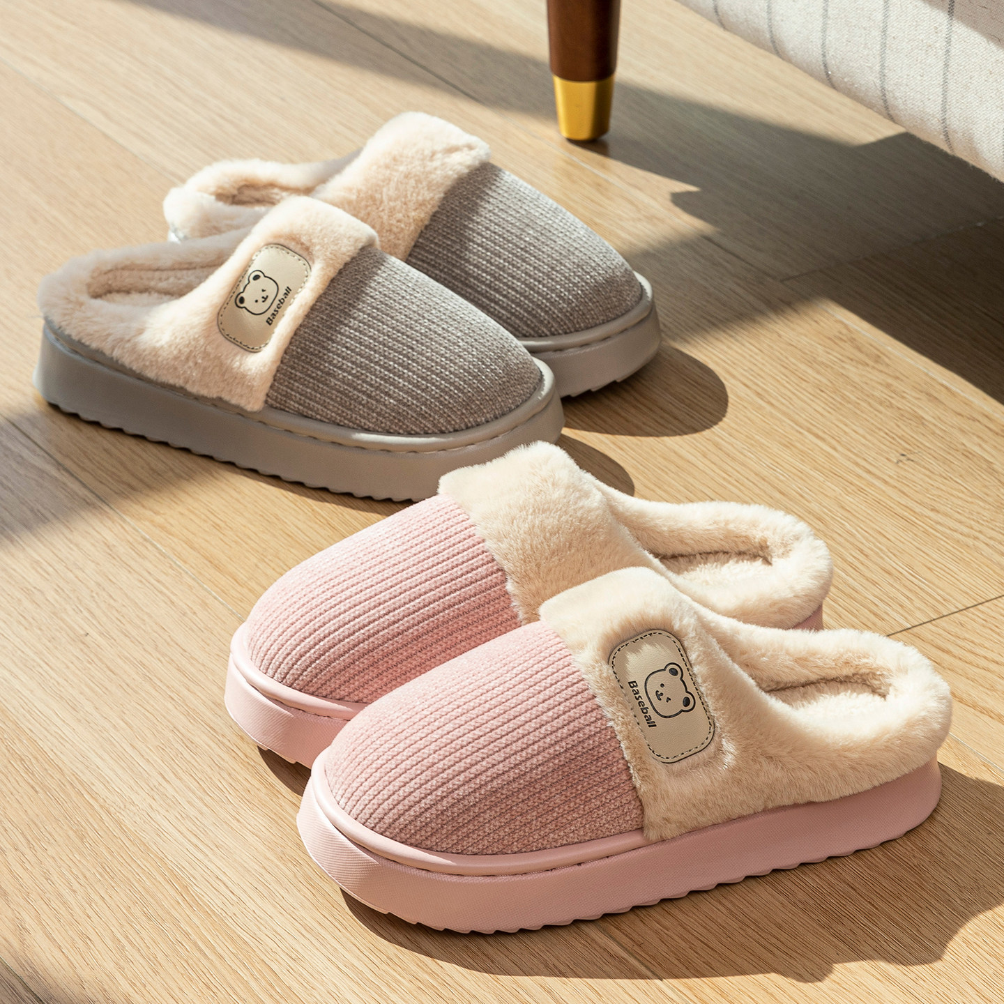 朴西棉拖鞋女士秋冬季厚底简约保暖室内居家用软底防滑情侣棉拖男