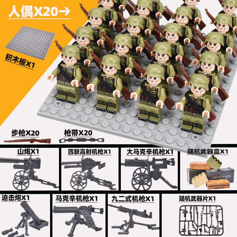 兼容乐高八路军积木小人仔士兵打仗战争拼装军事特种兵人苏联军团