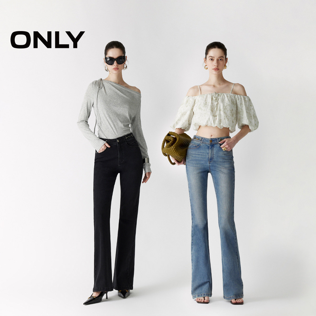 ONLY春季潮流立体剪裁设计小个子高腰裤子喇叭裤牛仔裤女