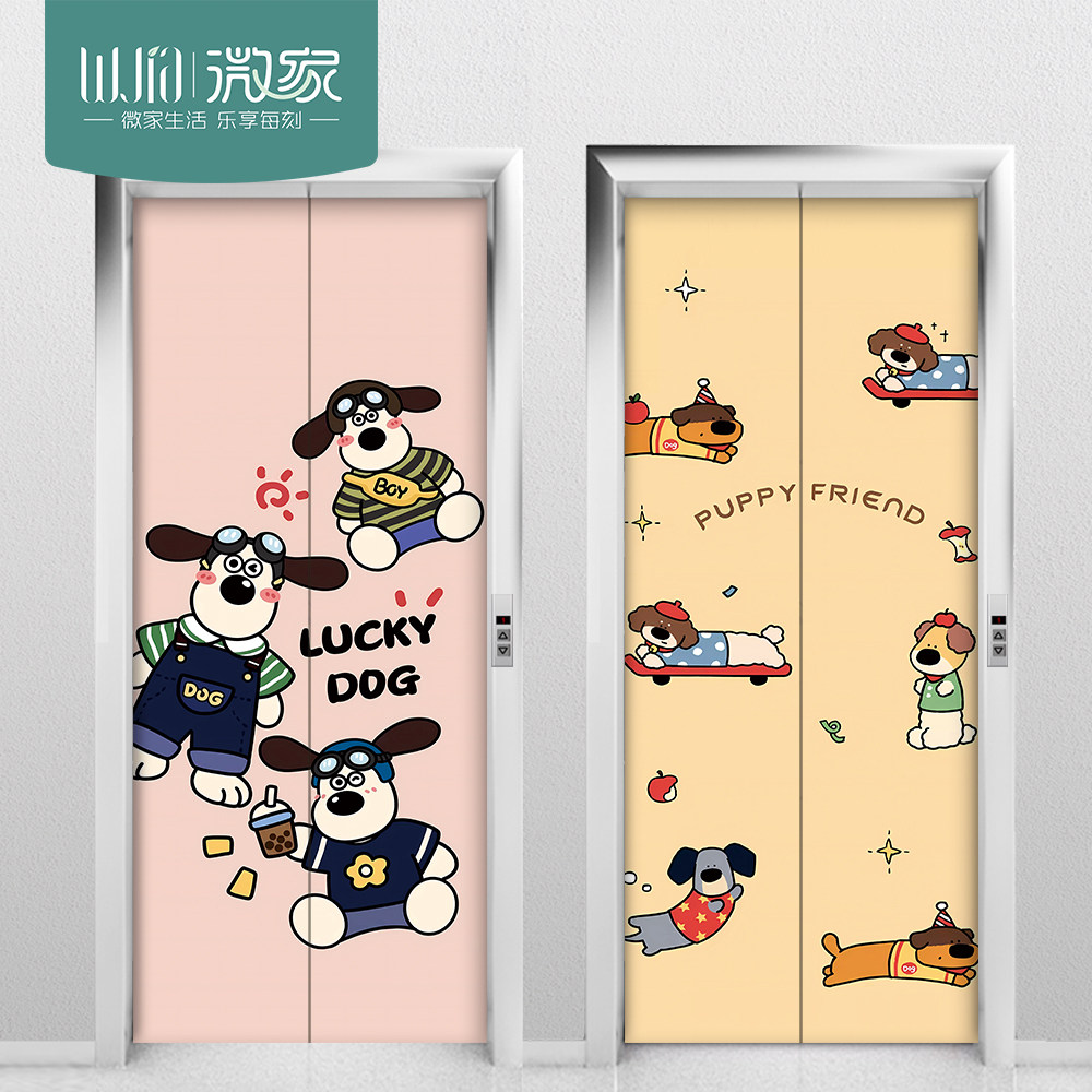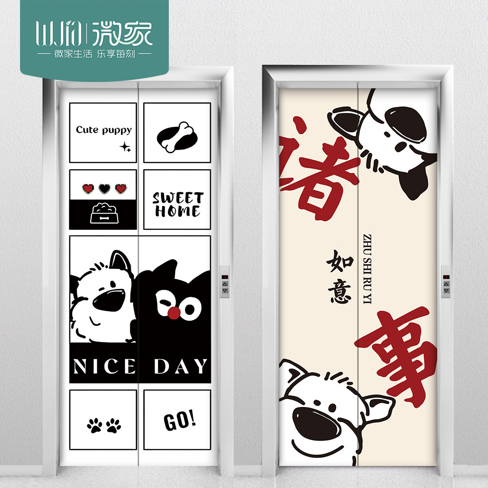 电梯门贴纸狗狗平安喜乐入户门装饰电梯贴膜墙贴自粘防水防潮贴画