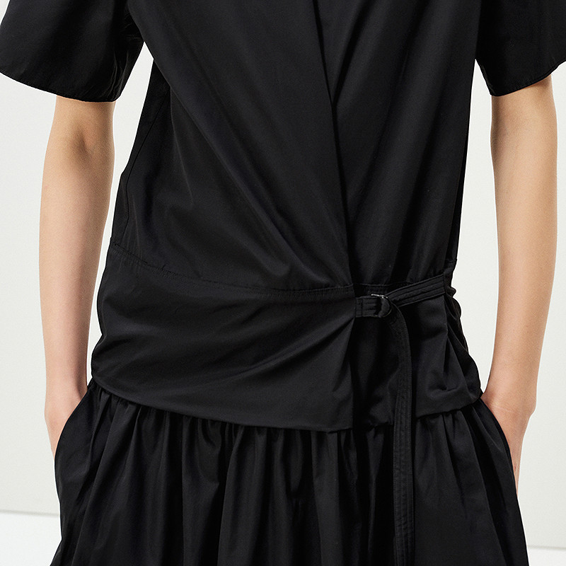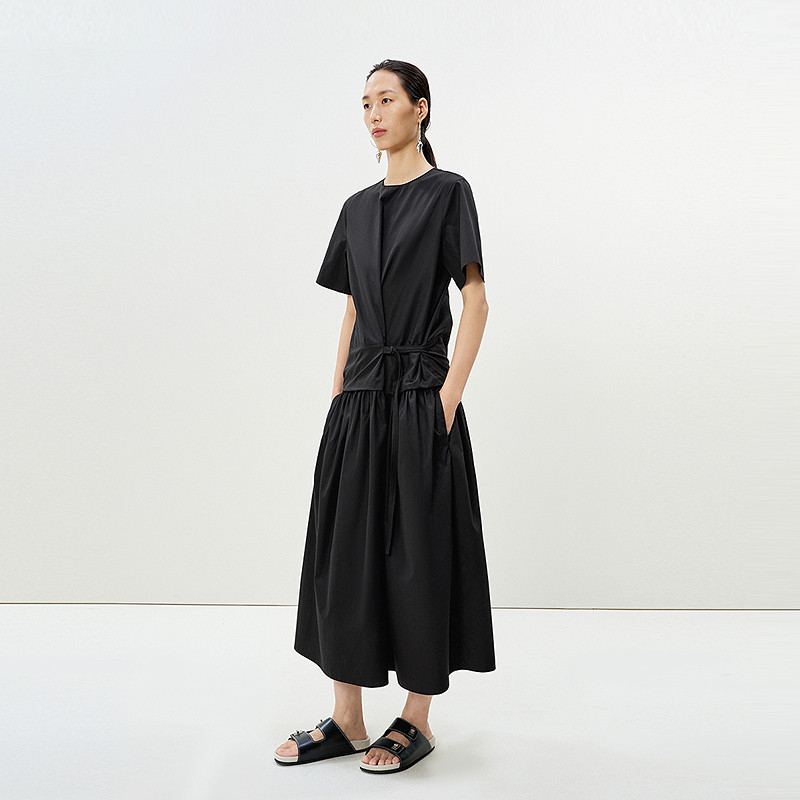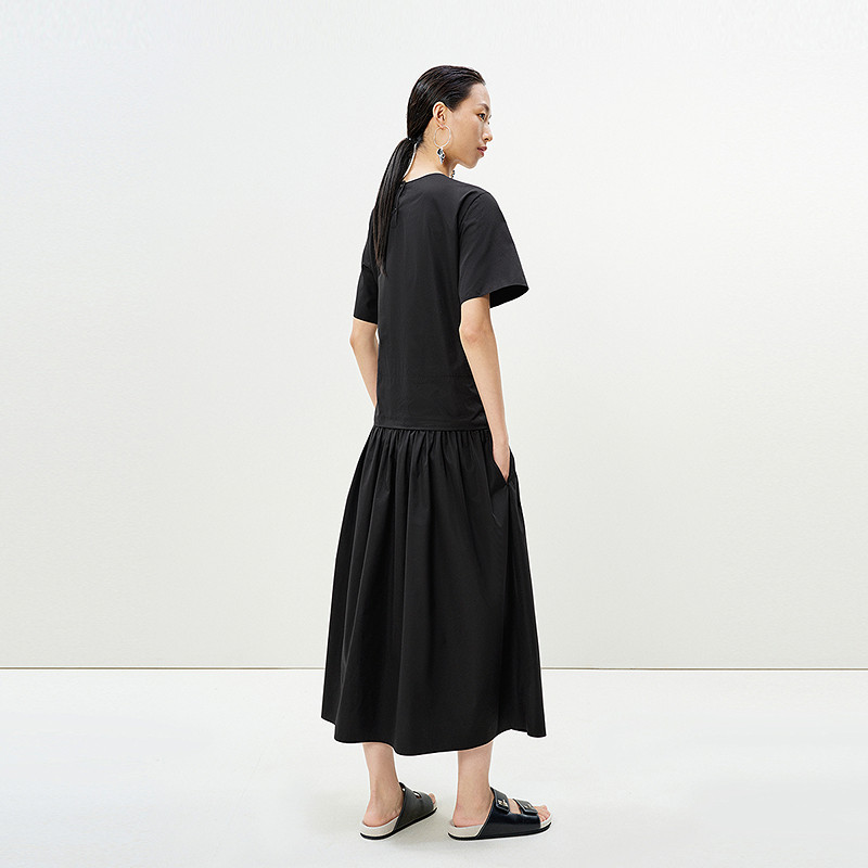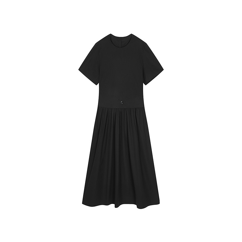 LESS夏拼接设计感抽褶简约休闲棉质T恤短袖连衣裙子2P4G13650