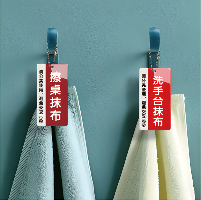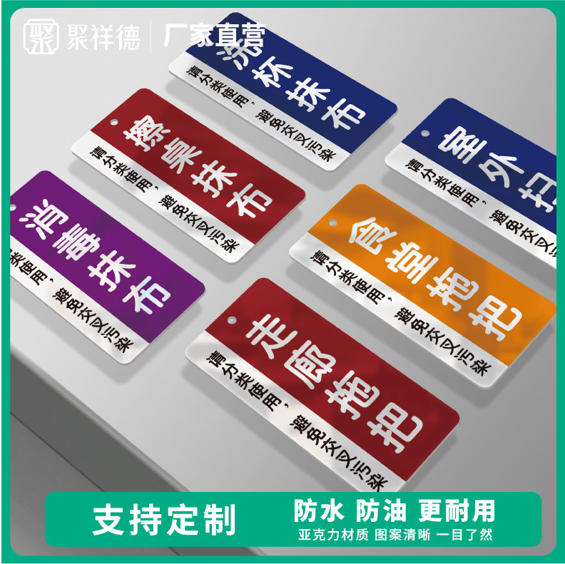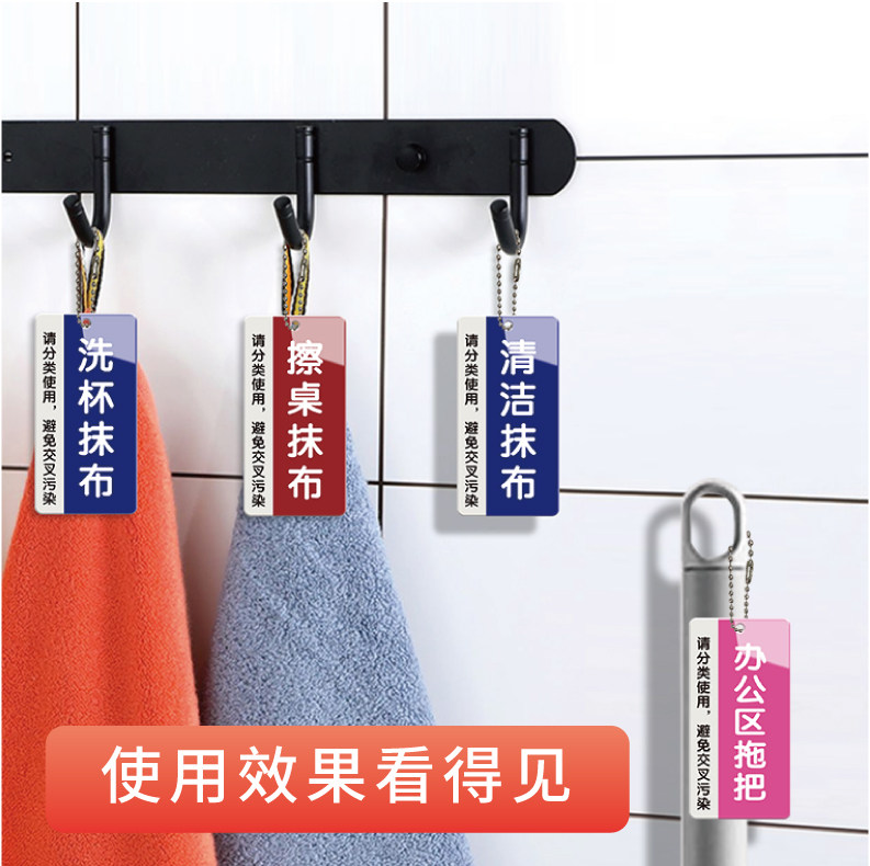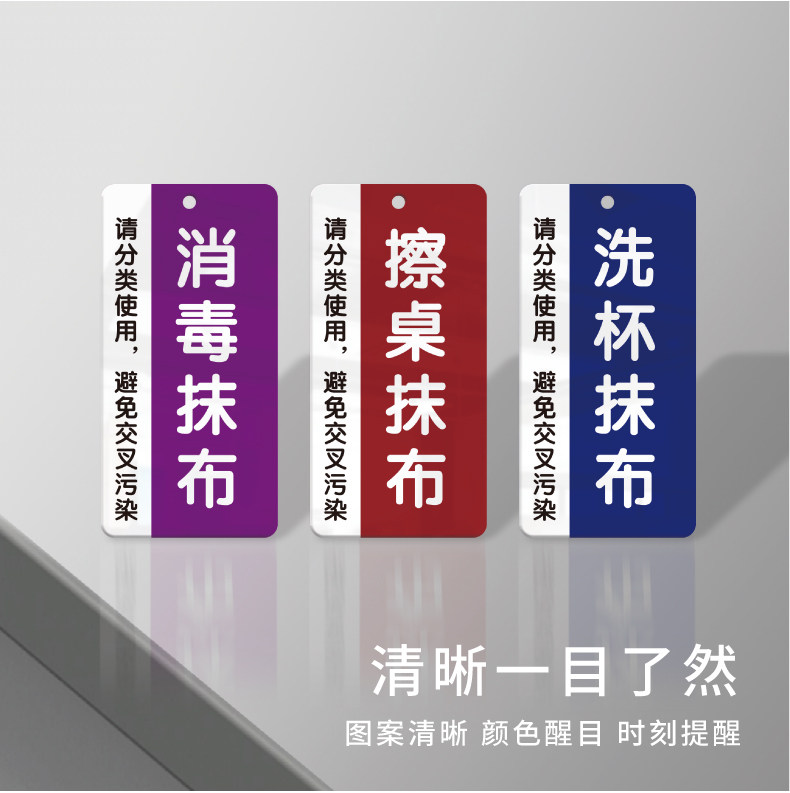 竖款厨房工具物品分类标识全套洗碗抹布毛巾拖把指示贴亚克力消毒清洗手套标志医院学校食堂后厨4D管理标识牌