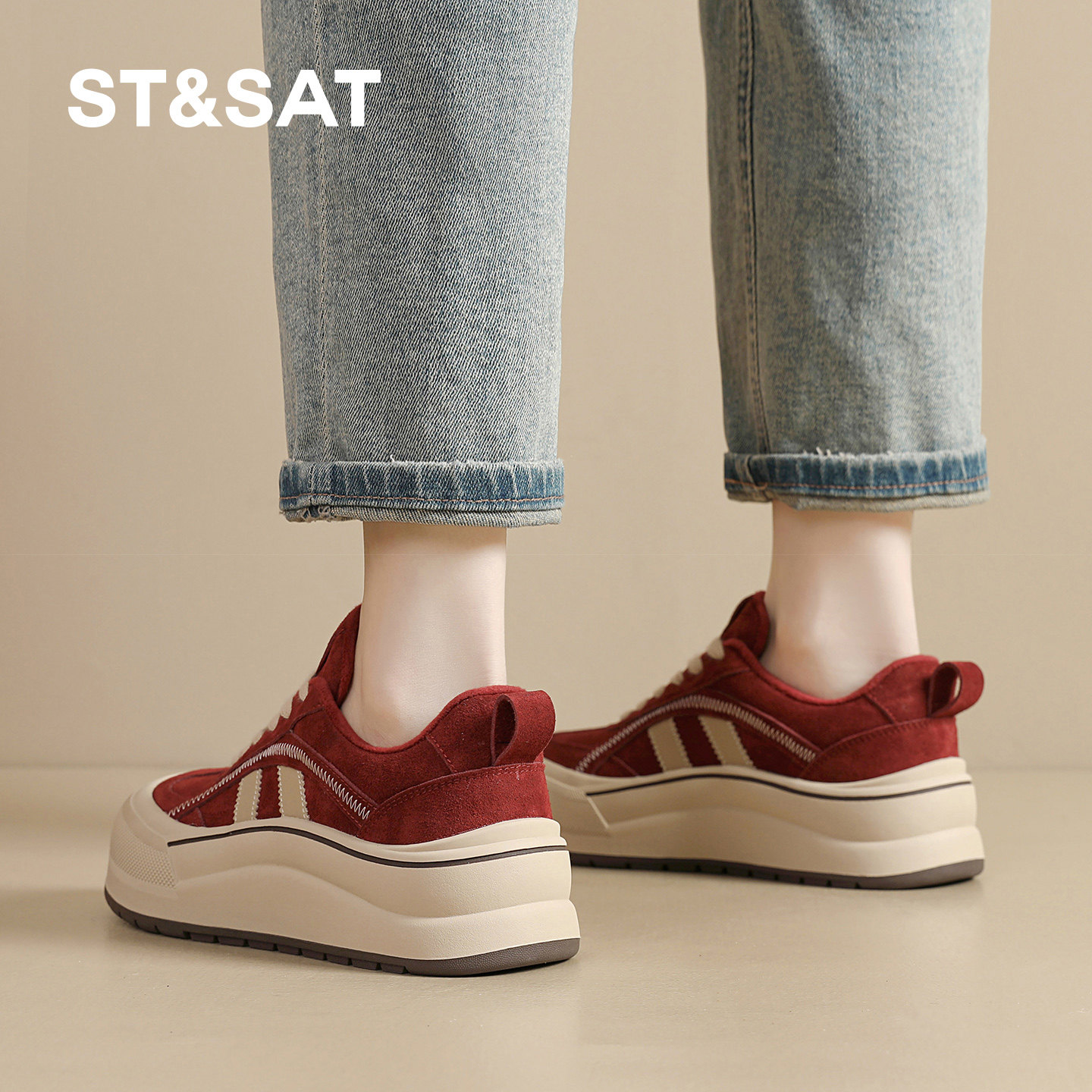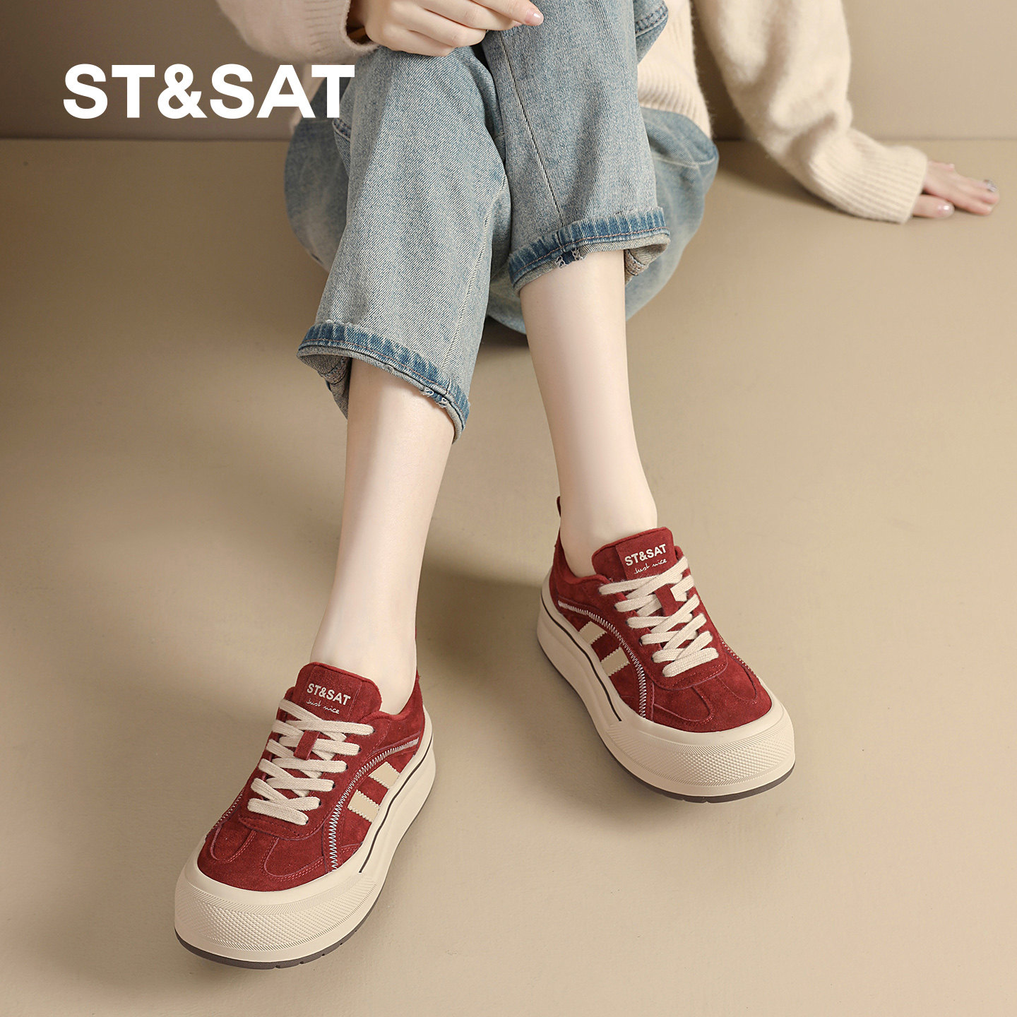 星期六厚底德训鞋女鞋春季新款网红爆款增高防滑运动鞋女士休闲鞋