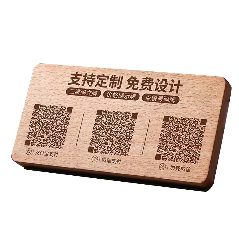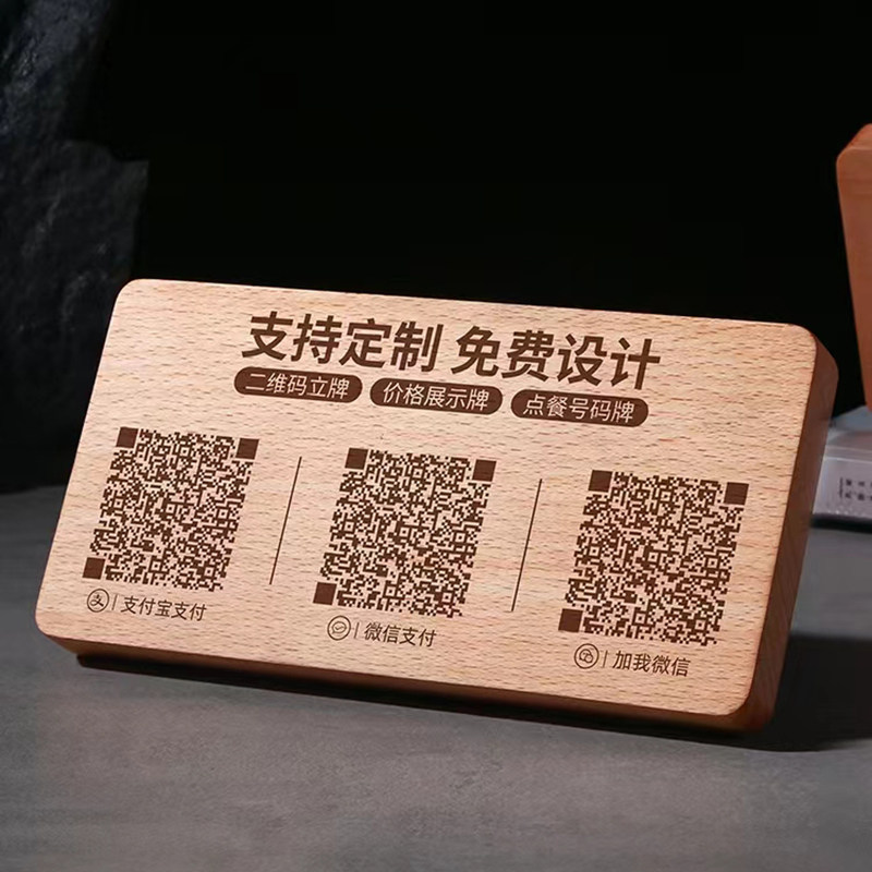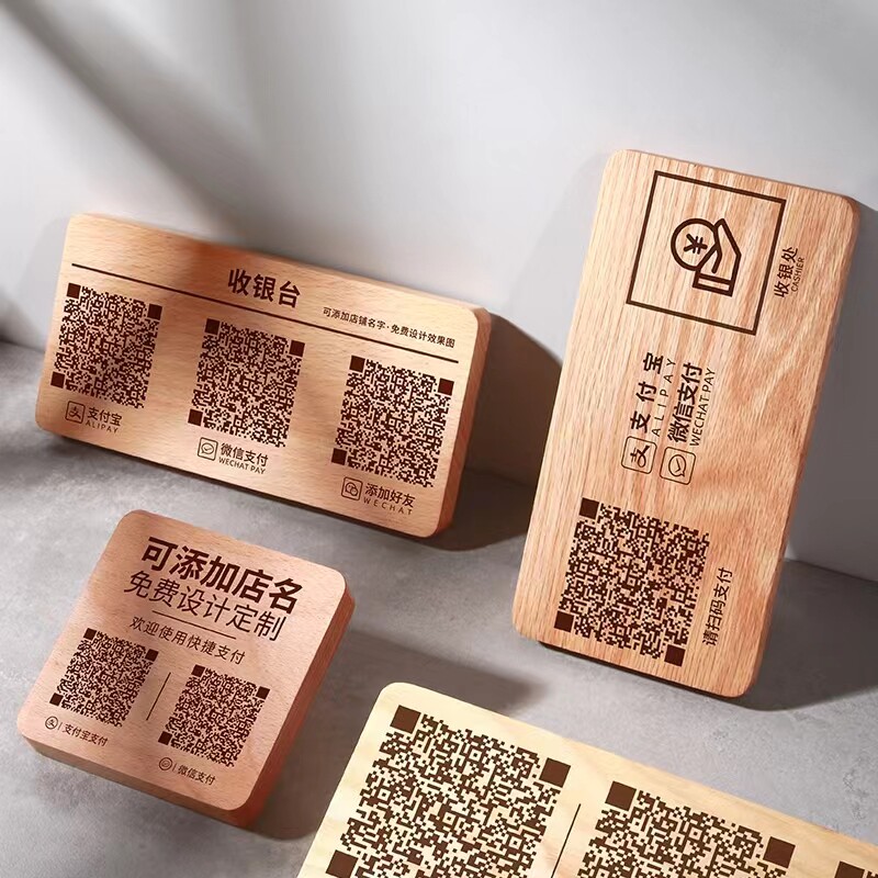 定制实木头收款码支付宝微信二维码收银台木质店铺展示牌刻字订做