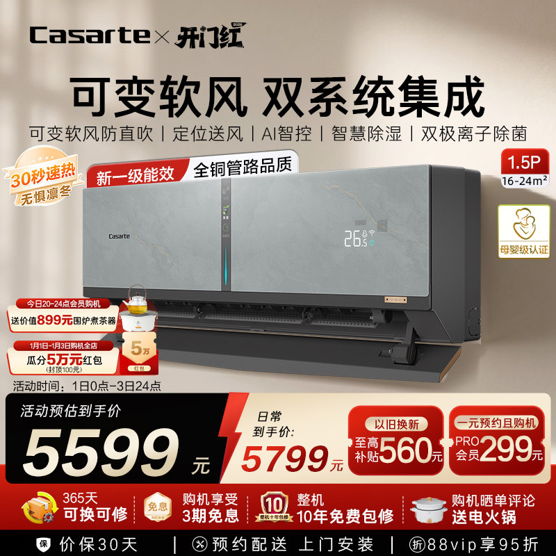以旧换新卡萨帝空调挂机变频家用卧室除湿冷暖可变软风新1级1.5匹