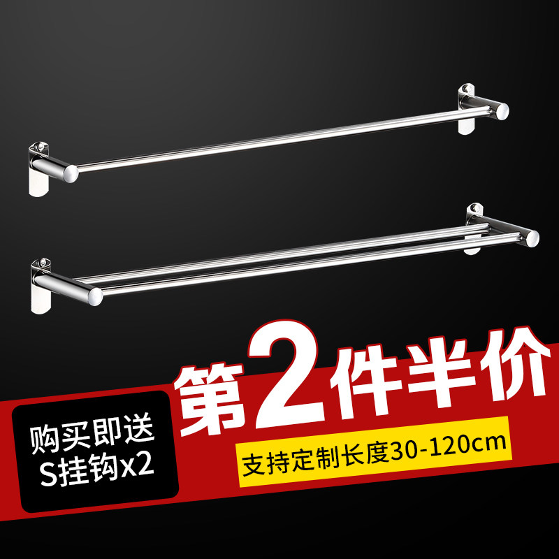 304加厚浴室不锈钢毛巾杆挂杆毛巾架子免打孔卫生间单杆双杆加长