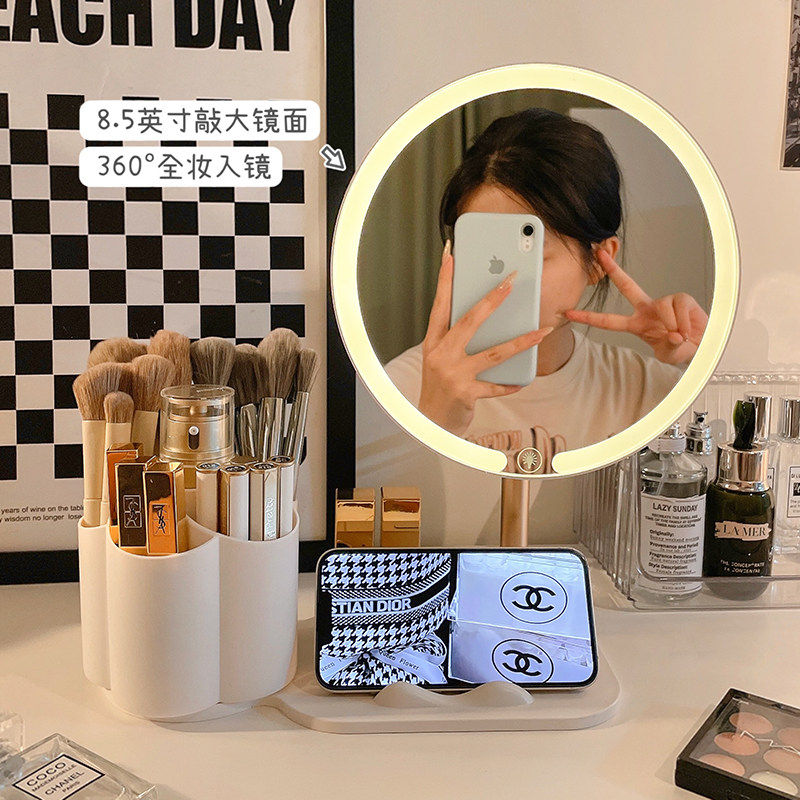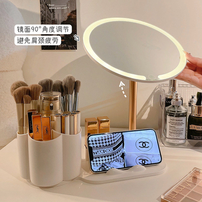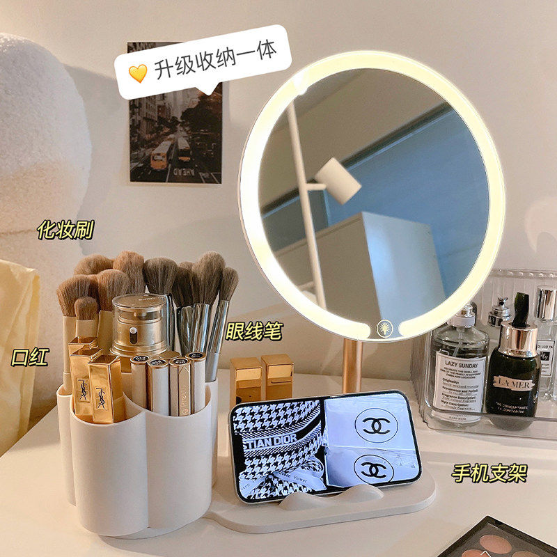 led化妆镜带灯学生台式桌面卧室梳妆台高级感梳妆镜子收纳盒高清