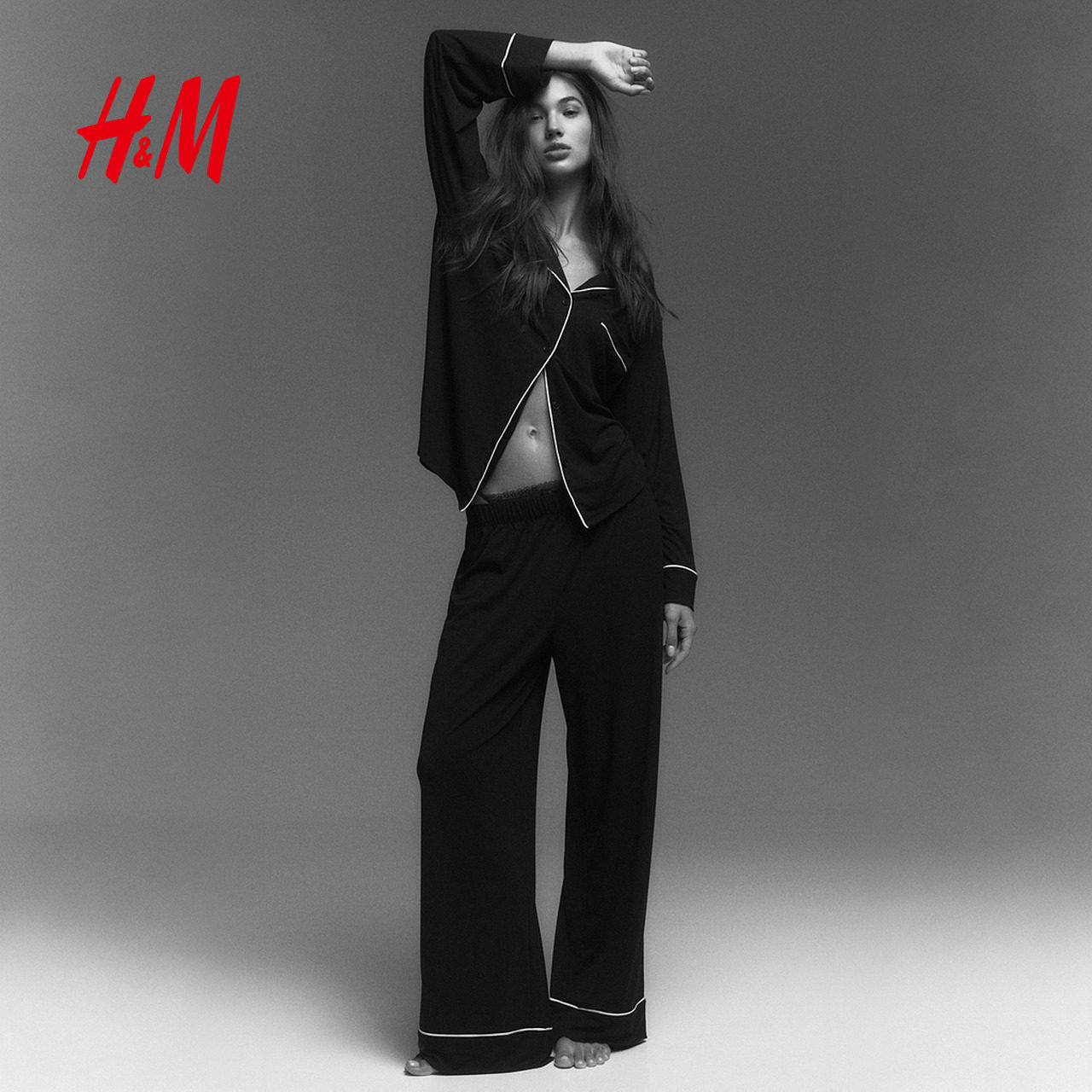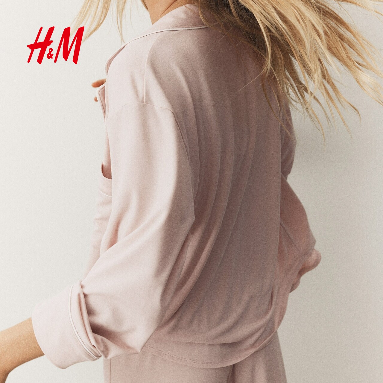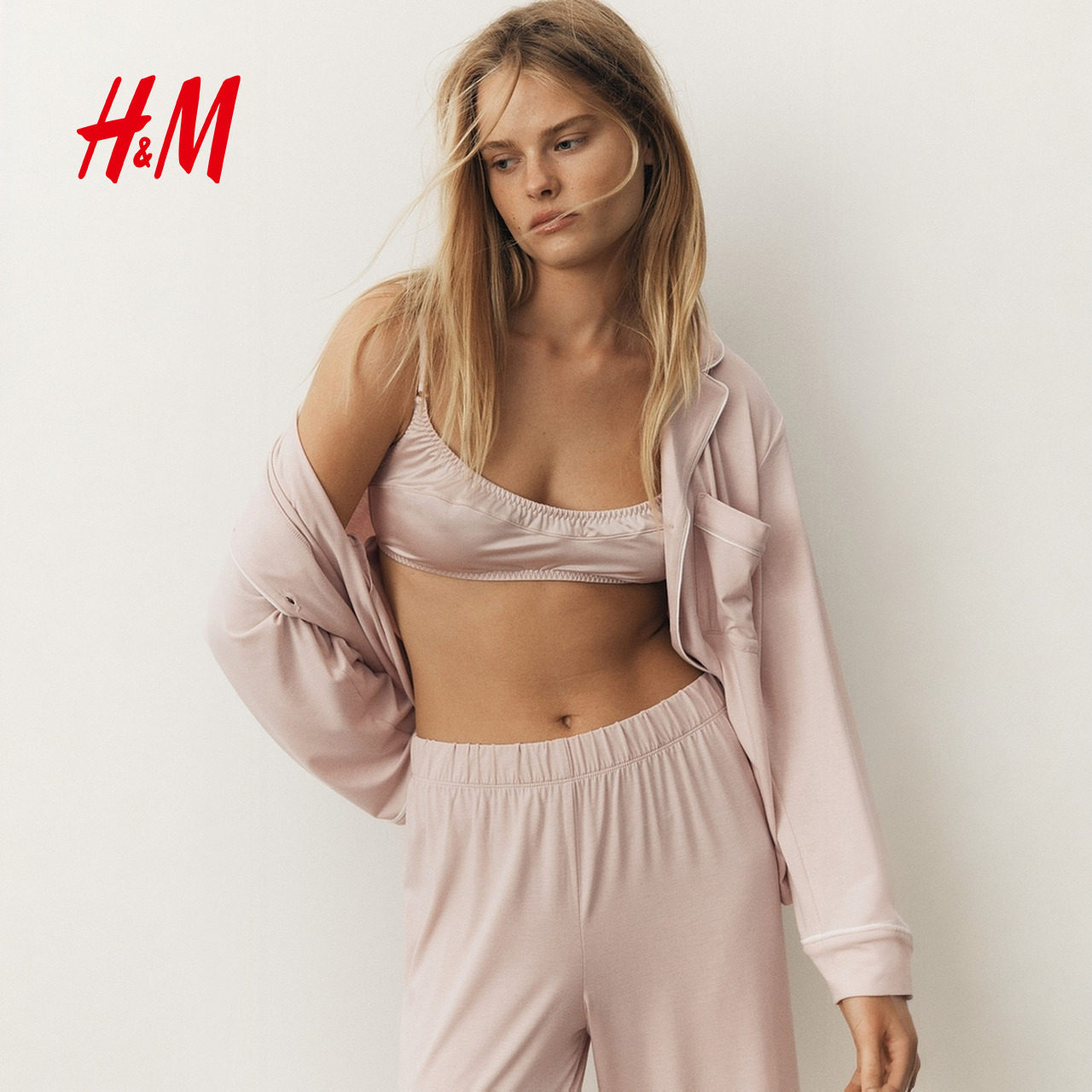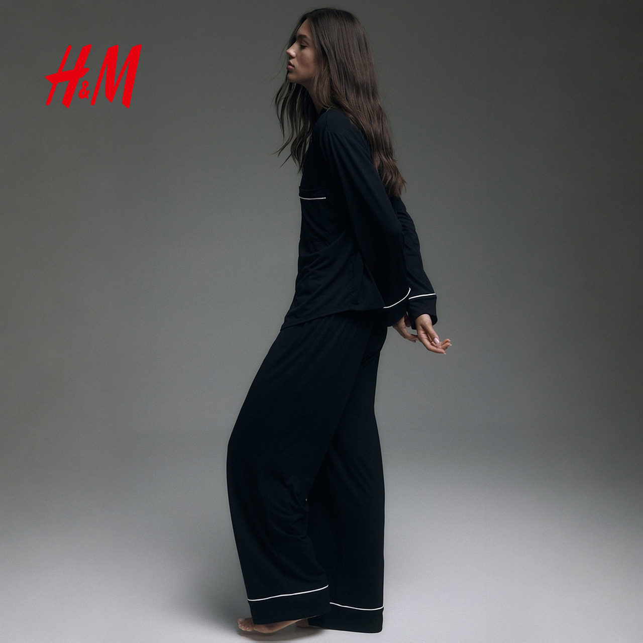 HM女装家居服套装2件式2025冬季新款红色保暖长袖睡衣睡裤0998802