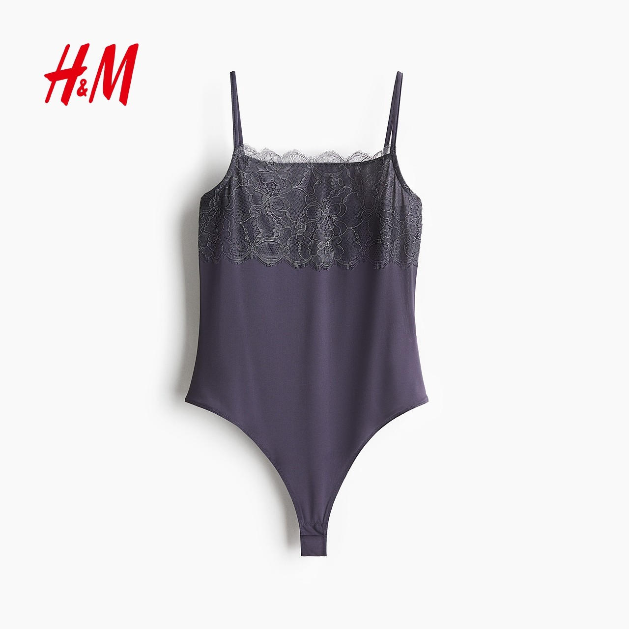 HM2025冬季新款女装蕾丝装饰丁字裤连体紧身衣1314680