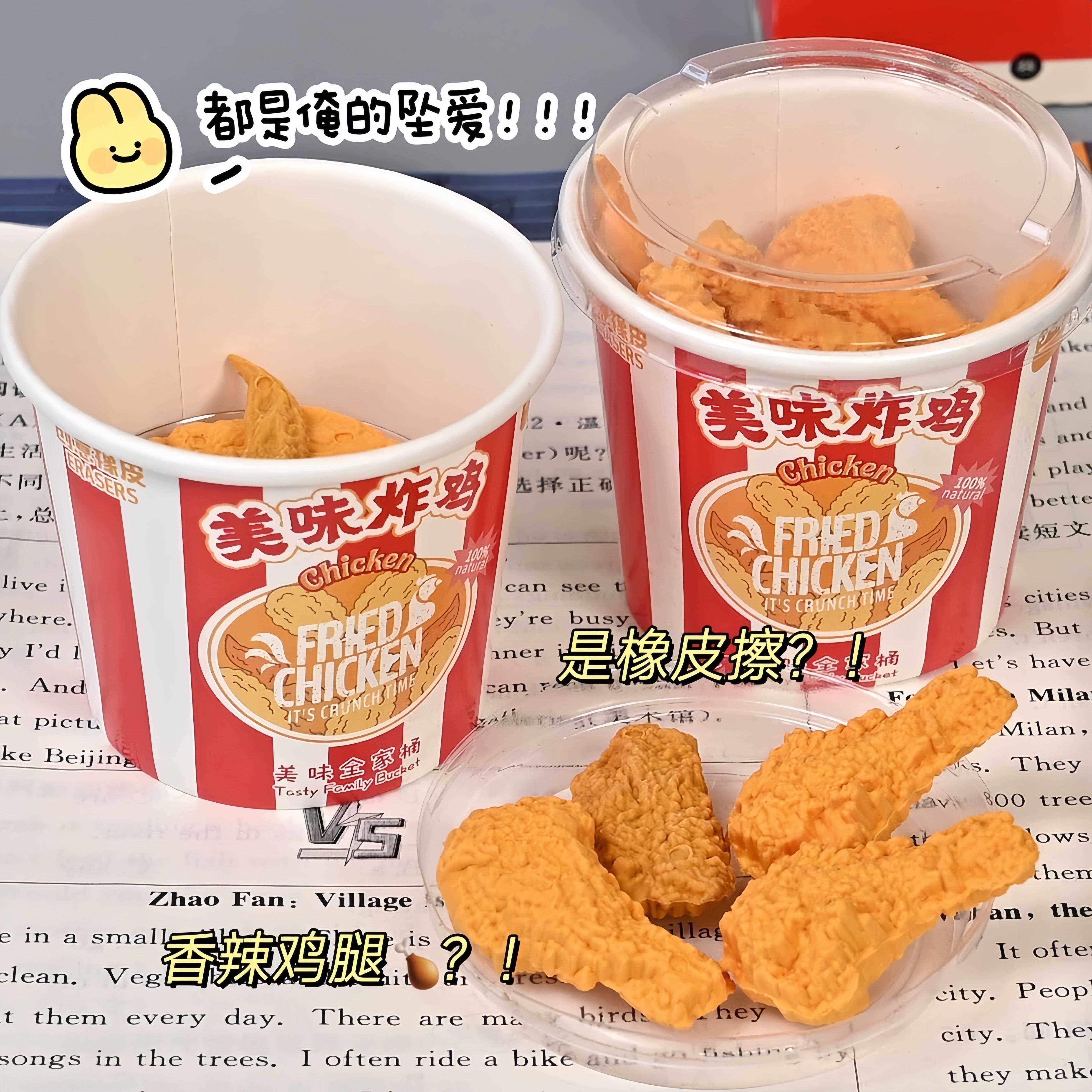 仿真炸鸡全家桶卡通橡皮擦搞怪搞笑鸡翅造型鸡腿创意橡皮学生奖品