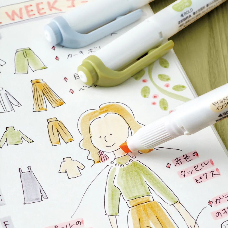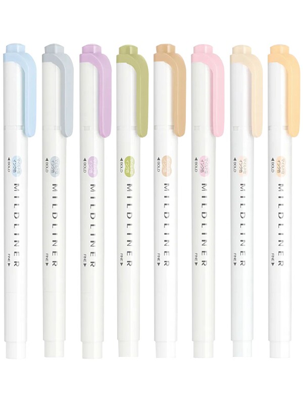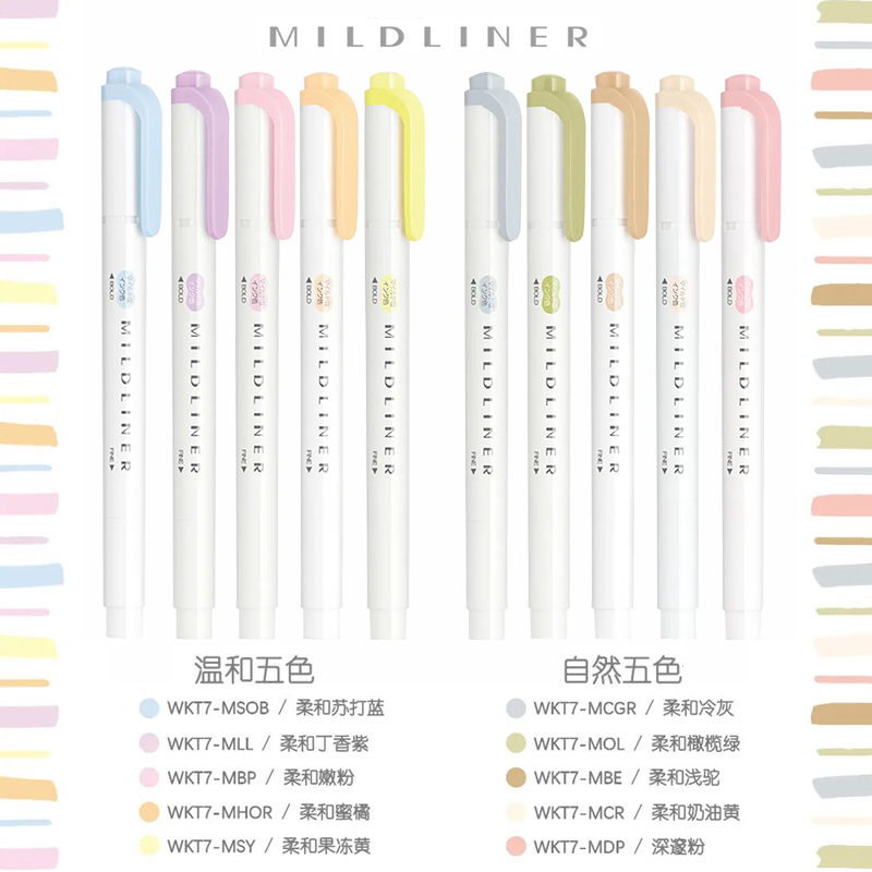 日本zebra斑马荧光笔WKT7新色mildliner高颜值学生用苏打蓝手帐标记深邃粉淡色自然系橄榄绿双头荧光色笔套装