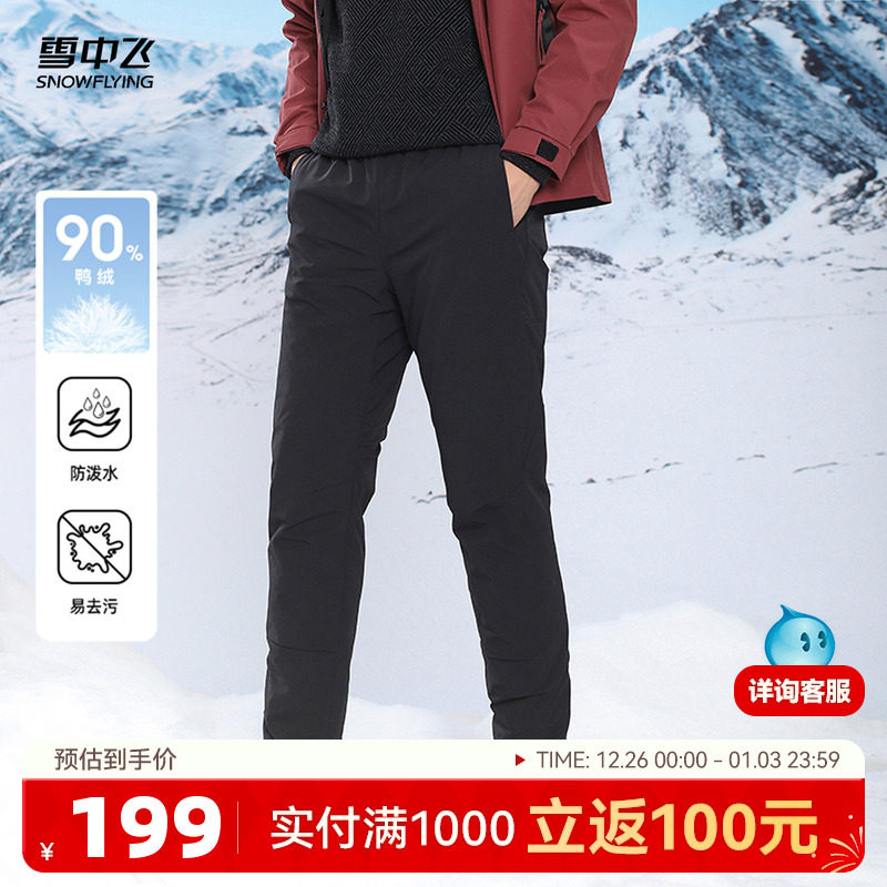雪中飞2025冬新款男羽绒裤功能性防泼水易去污户外城野抗寒高腰