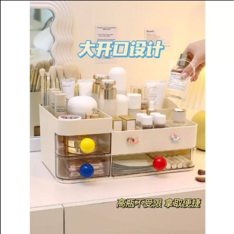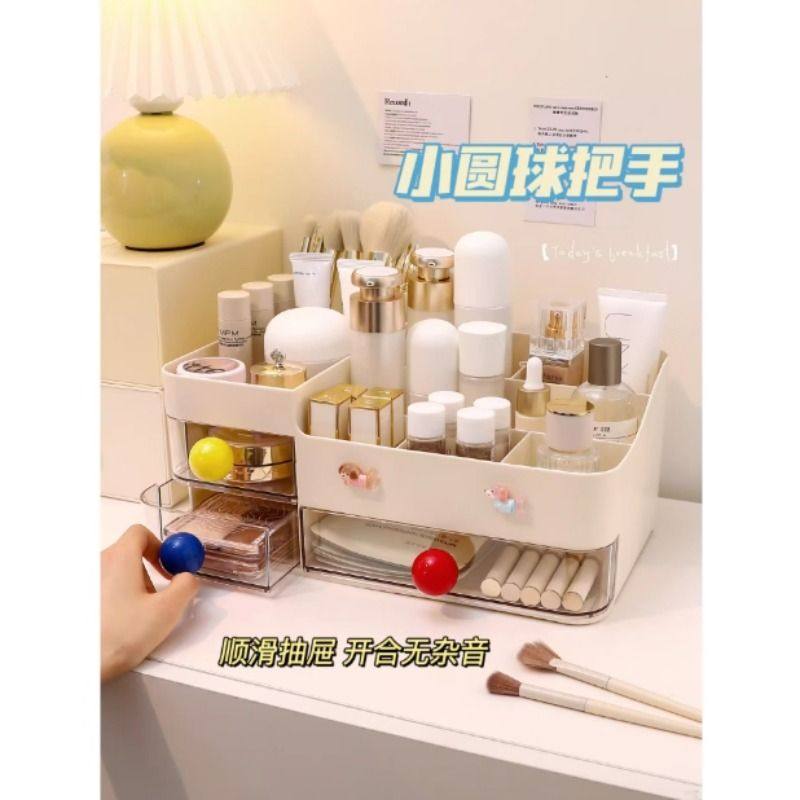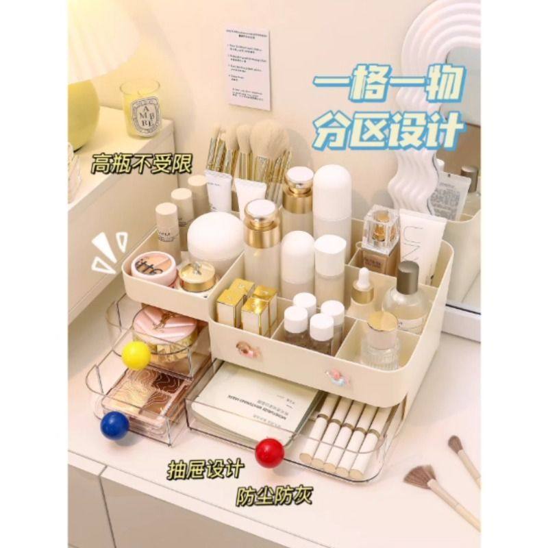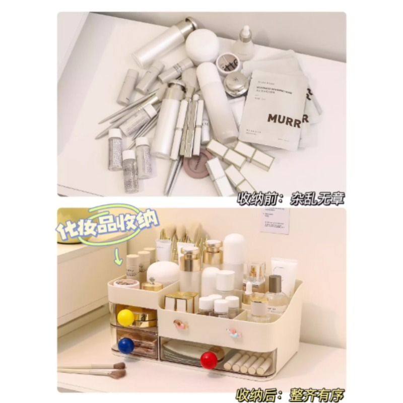 化妆品收纳盒桌面高级感大容量梳妆台整理箱护肤品置物架带镜子