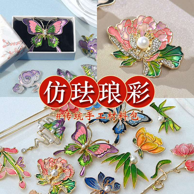 新年春节掐丝珐琅彩材料包手工diy胸针发簪饰品景泰蓝烧蓝团建暖