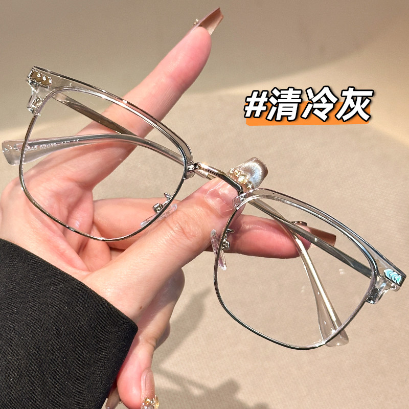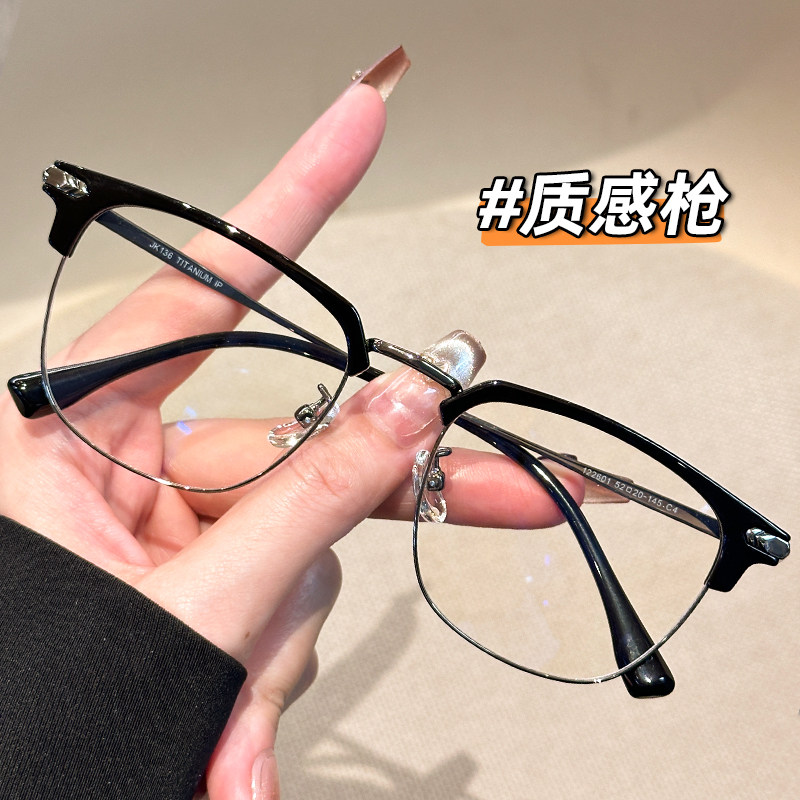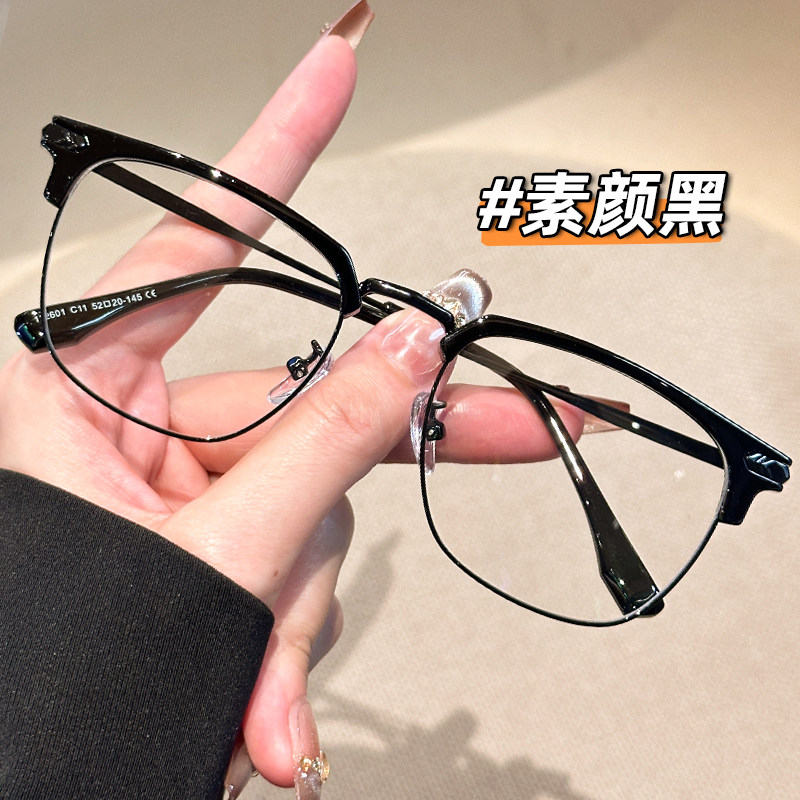 超轻半框斯文防蓝光辐射眼镜男款近视可配度数眼睛镜框架大脸显瘦
