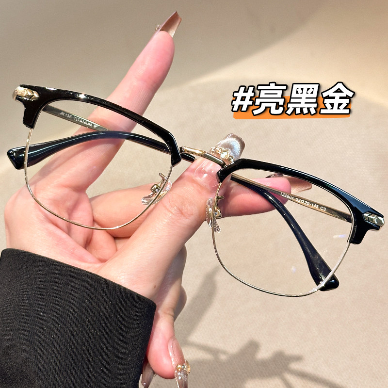 LOHO超轻冷茶色钛架眼镜近视可配度数女防蓝光高级感素颜眼睛镜框