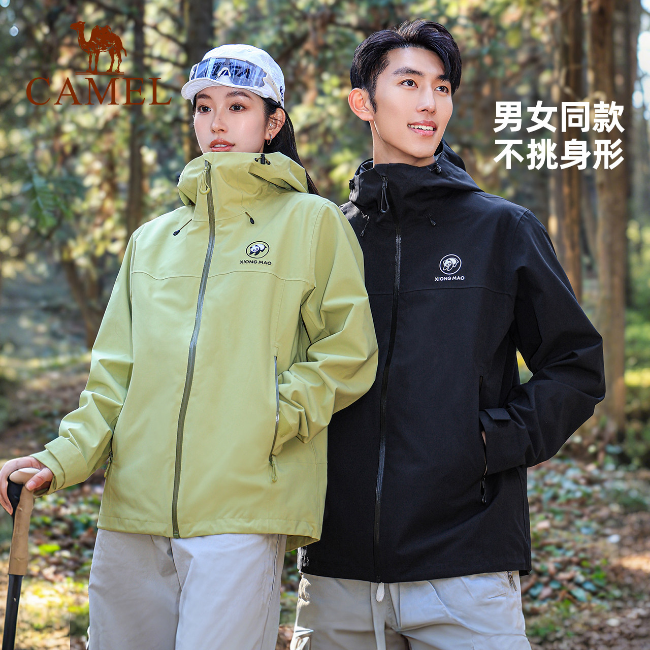 骆驼熊猫冲锋衣女新款2026春夏户外防风徒步登山服好看情侣外套男