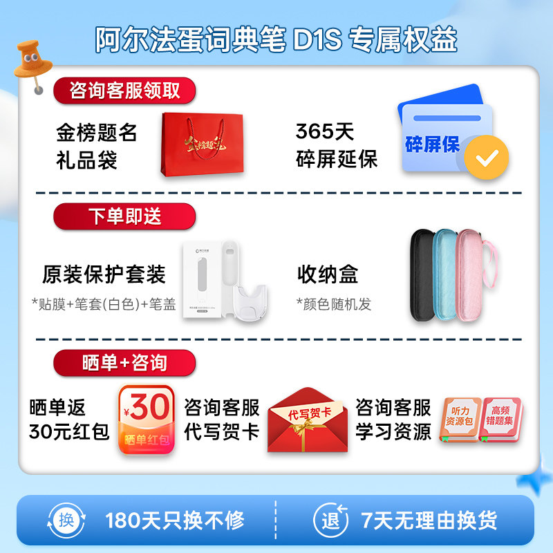 阿尔法蛋词典笔D1S/D1Plus电子词典翻译笔英语点读笔单词笔扫描官方旗舰店多功能小学生通用中英文专用扫描笔
