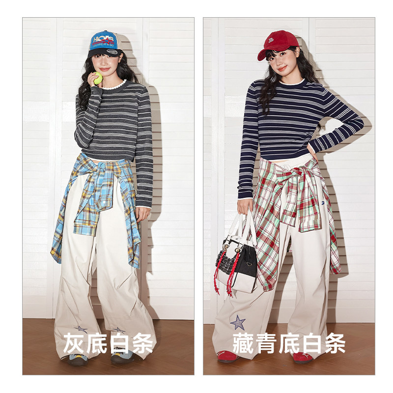 唐狮条纹针织衫上衣女2026新款春秋款小个子短款设计感毛衣外套VB