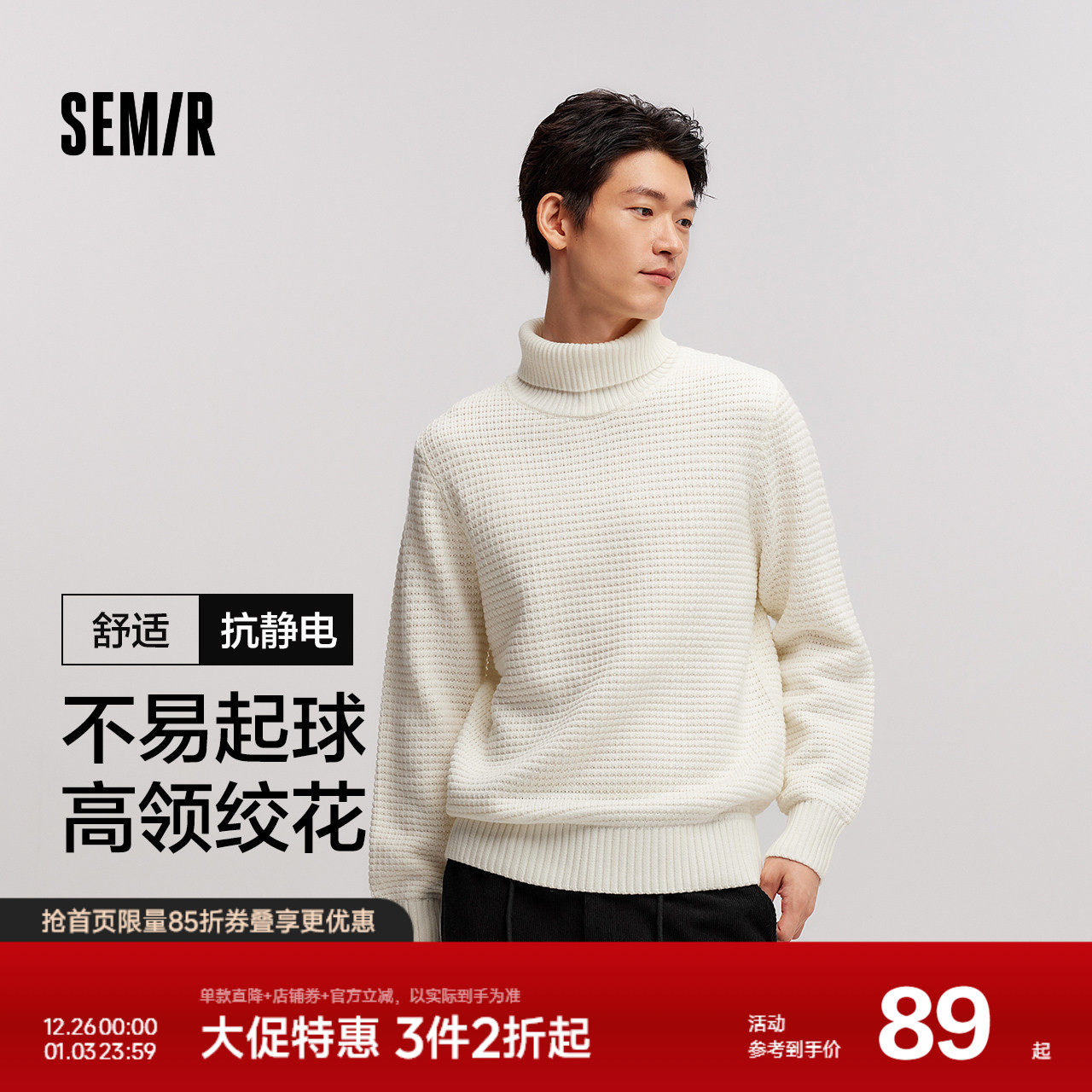 森马毛衣男高领内搭2024冬季新款毛衫肌理感绞花打底衫纯色针织衫