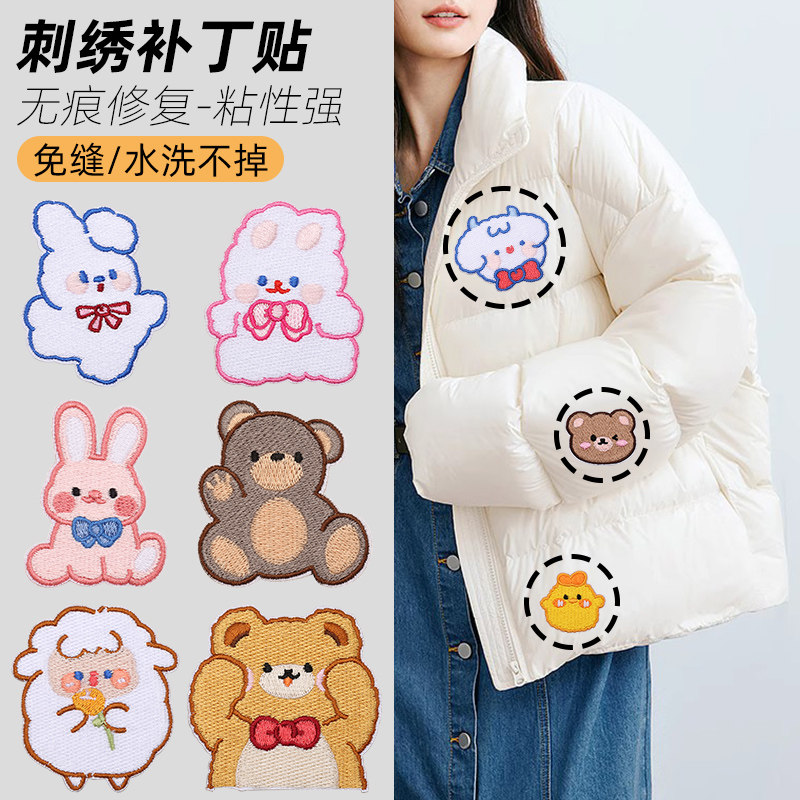 衣服刺绣布贴自粘羽绒服补丁贴儿童图案裤子破洞修补贴免缝可缝