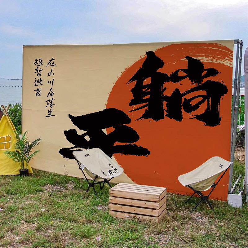 网红户外文字装饰挂布趣味氛围露营商用背景布墙布