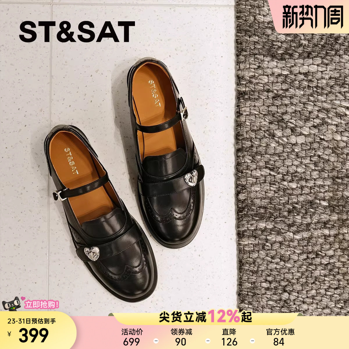 星期六英伦风布洛克小皮鞋女2026年春季新款皮带扣复古粗跟乐福鞋