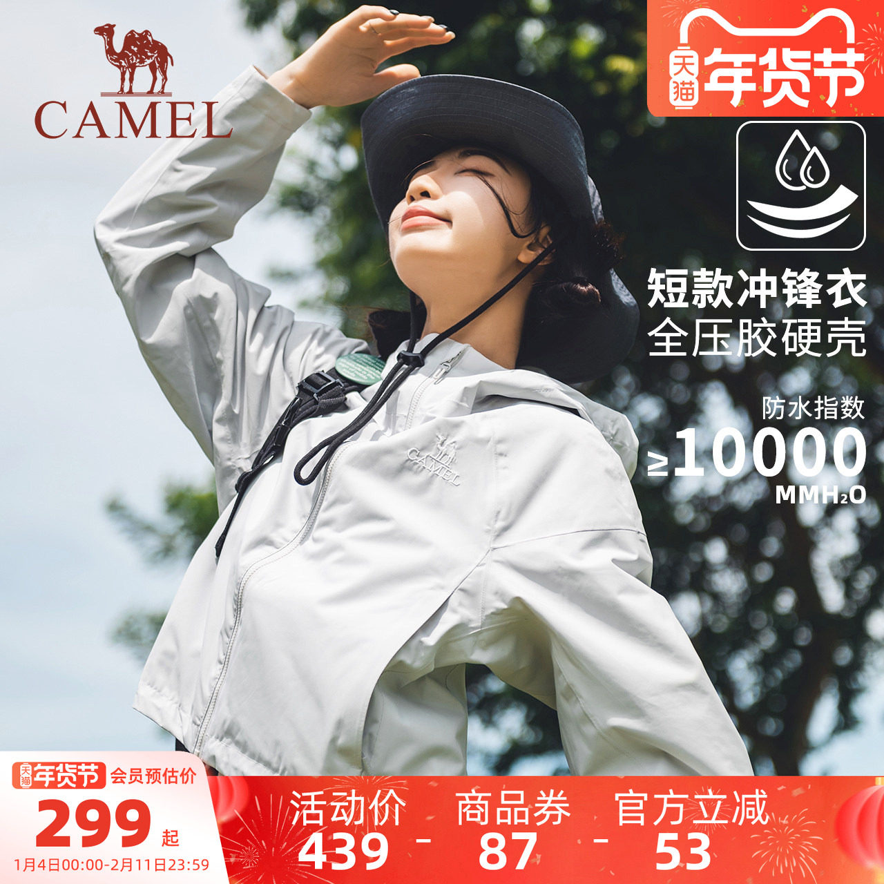 骆驼女装单层冲锋衣2025新款秋冬户外防风防水连帽立领男女款外套