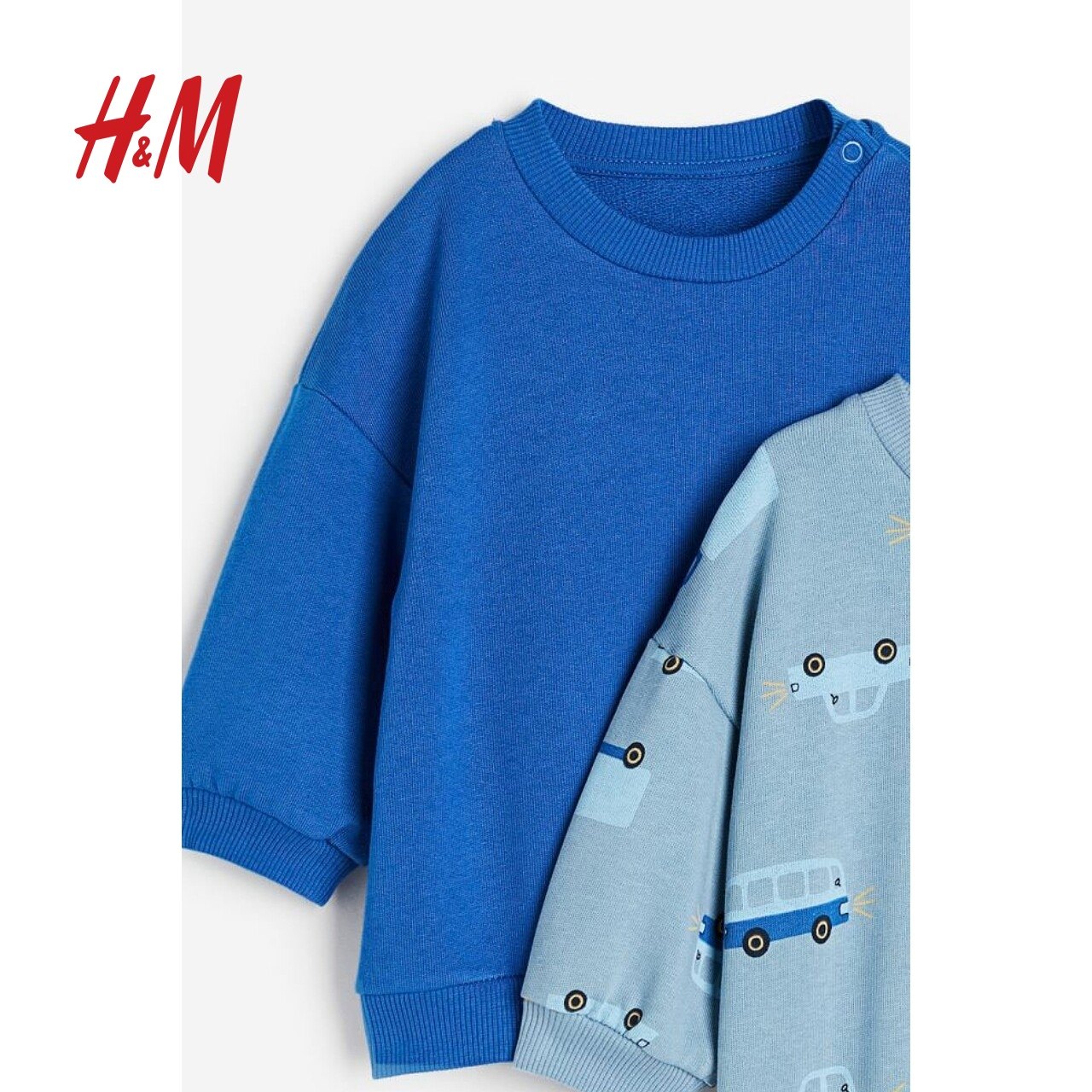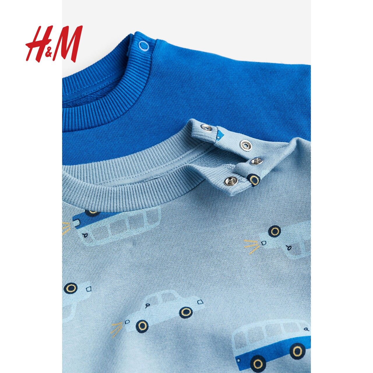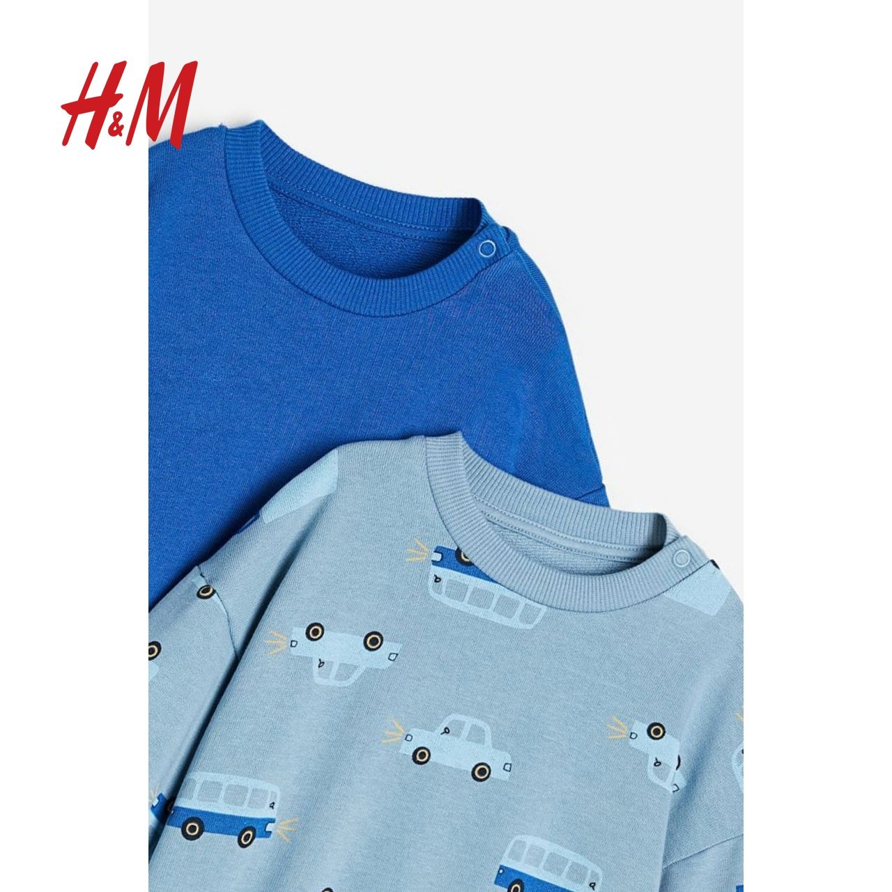 HM童装男婴卫衣2件装冬季纯棉舒适拼色恐龙绒衫1075299