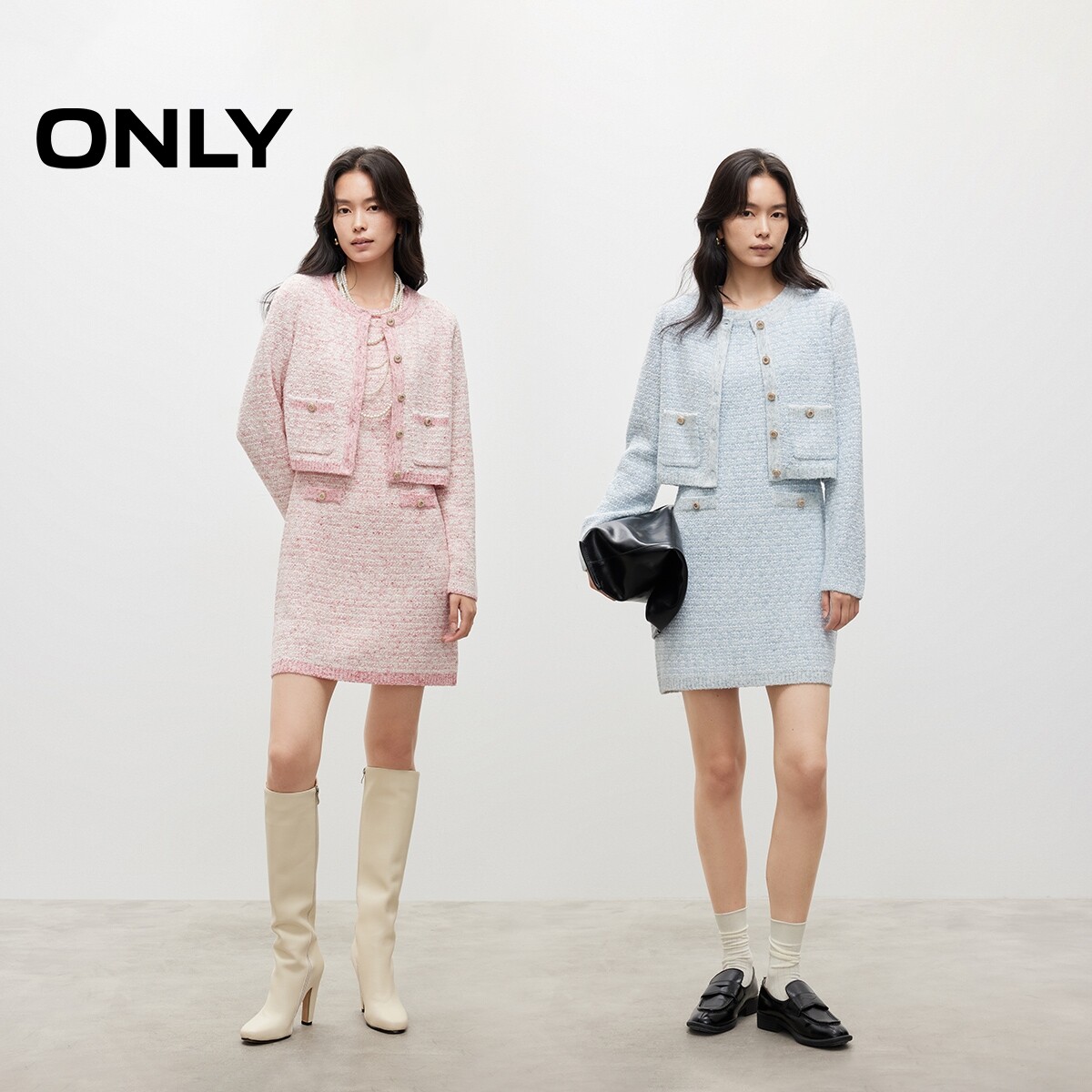 【ONLY奥莱】春季重工优雅撞色精致纽扣小香风短裙套装连衣裙女