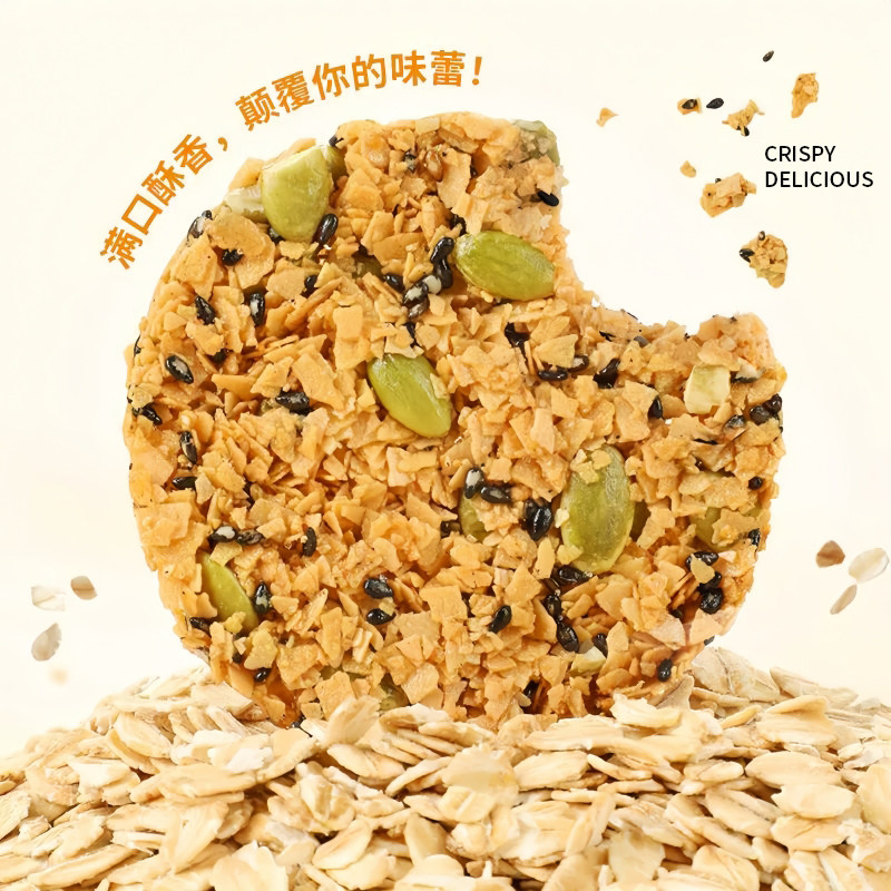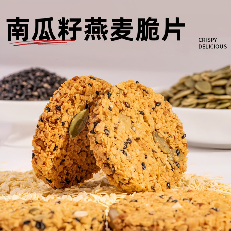 南瓜籽燕麦脆片南瓜子脆饼全粗粮饼干谷物批发零食食品小吃健康