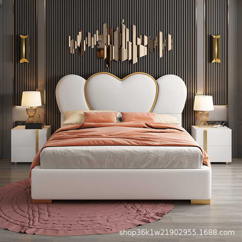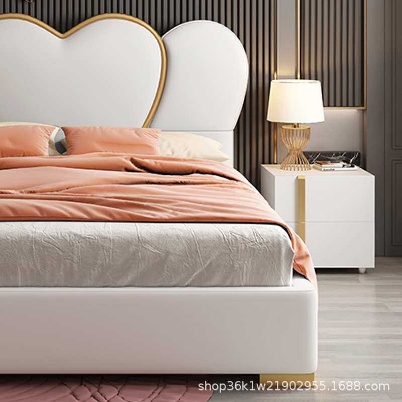 港式轻奢卧室皮艺双人床1.8米主卧婚床后现代卧室储物2米x2米双人
