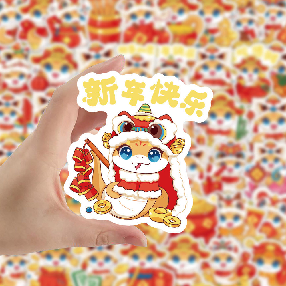 60张新品蛇年贴纸新年卡通蛇行李箱水杯滑板车防水装饰贴画