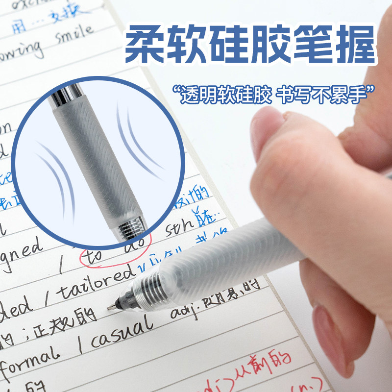 得力刷题笔速干st头透明考试笔按动笔中性笔学生用红笔学生专用备考水性笔0.5mm黑色透明考试笔高颜值