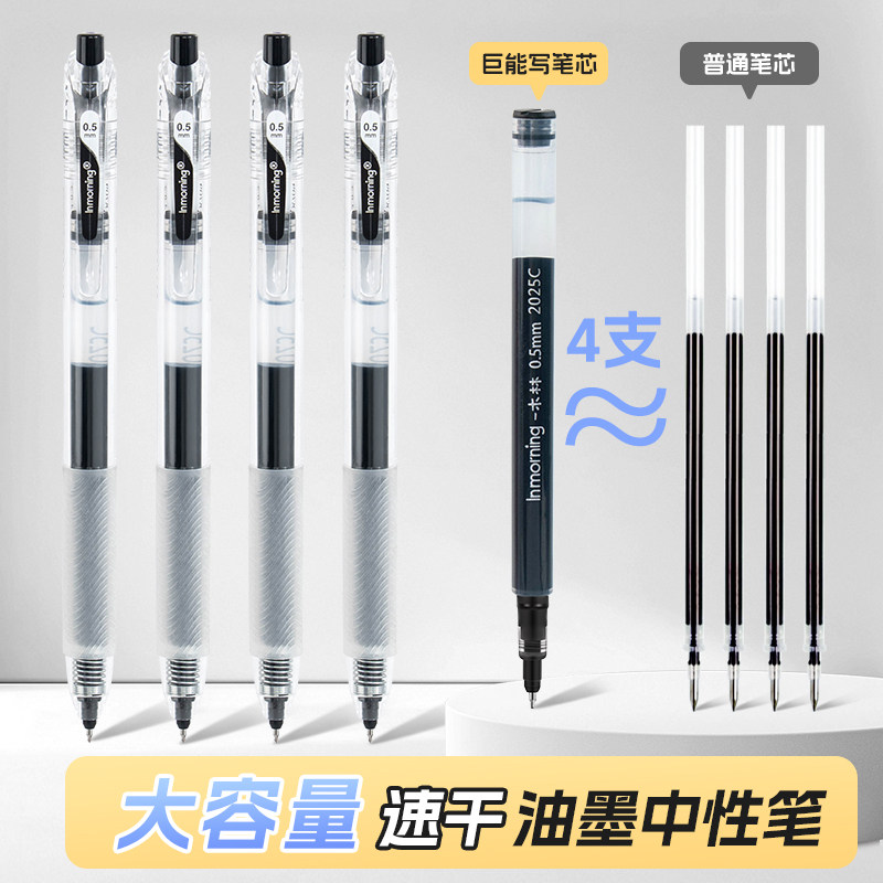 一木林胖墩芯1700米大容量按动中性笔刷题笔黑笔红笔蓝笔高颜值ins风签字笔圆珠笔0.5mm笔芯速干顺滑考试浓墨