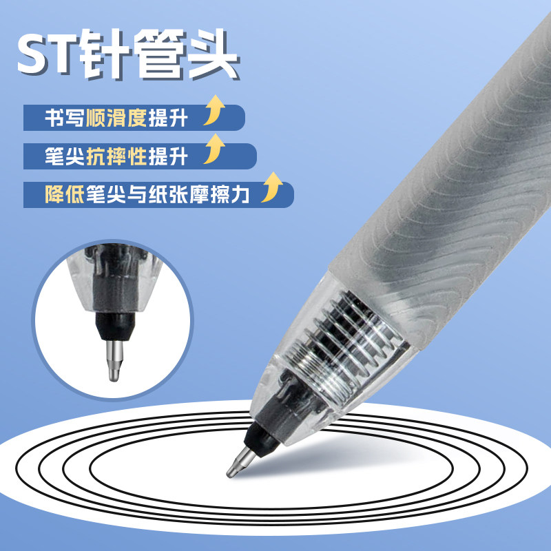 国风桶装刷题笔速干顺滑黑笔高颜值按动中性笔ST0.5黑色笔芯水性圆珠笔小学生专用考试笔非按斤卖碳素签字笔