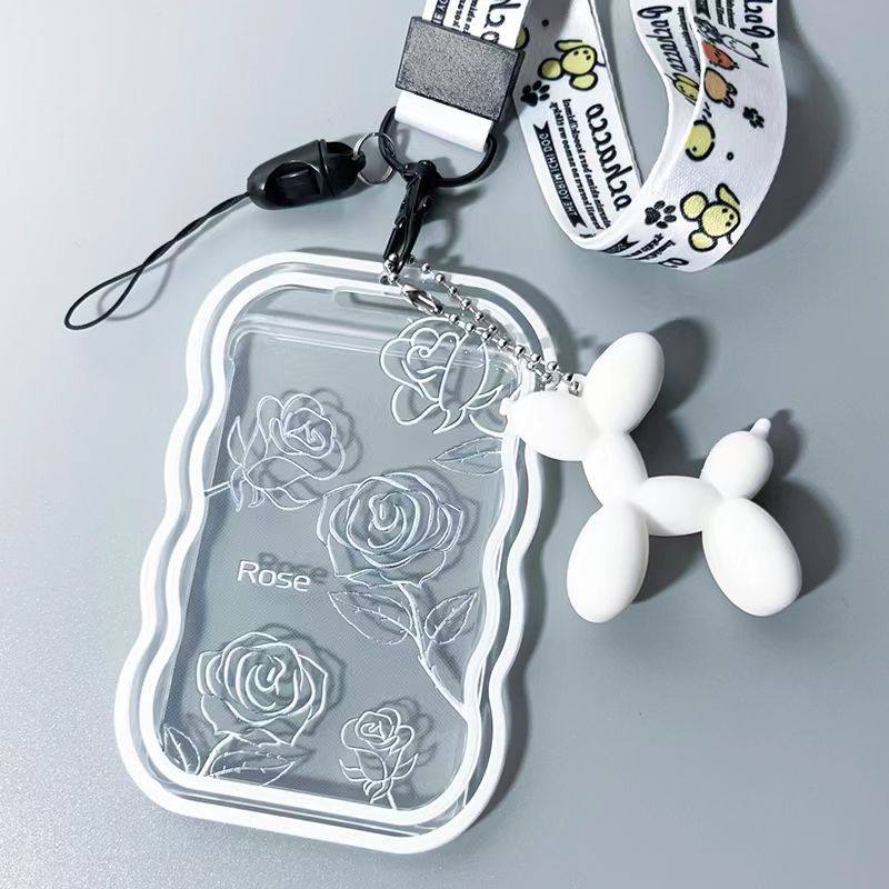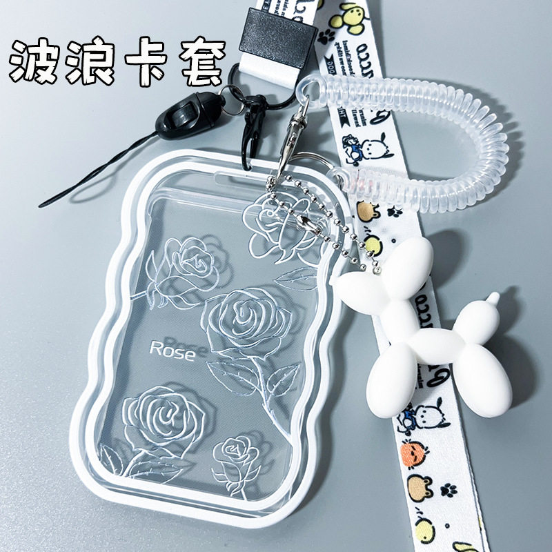 玫瑰花卡套校园卡学生小可爱透明饭卡ins风带挂绳保护套公交卡