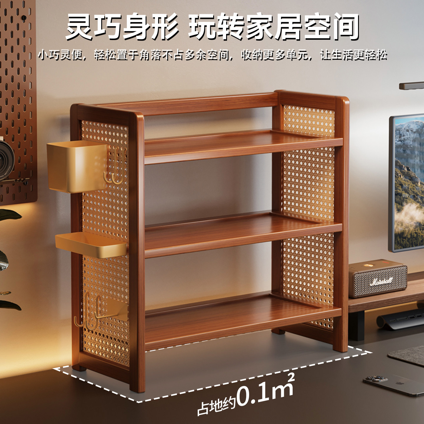 全实木桌面书架桌上置物架办公室收纳改造神器书桌分层伸缩小书柜