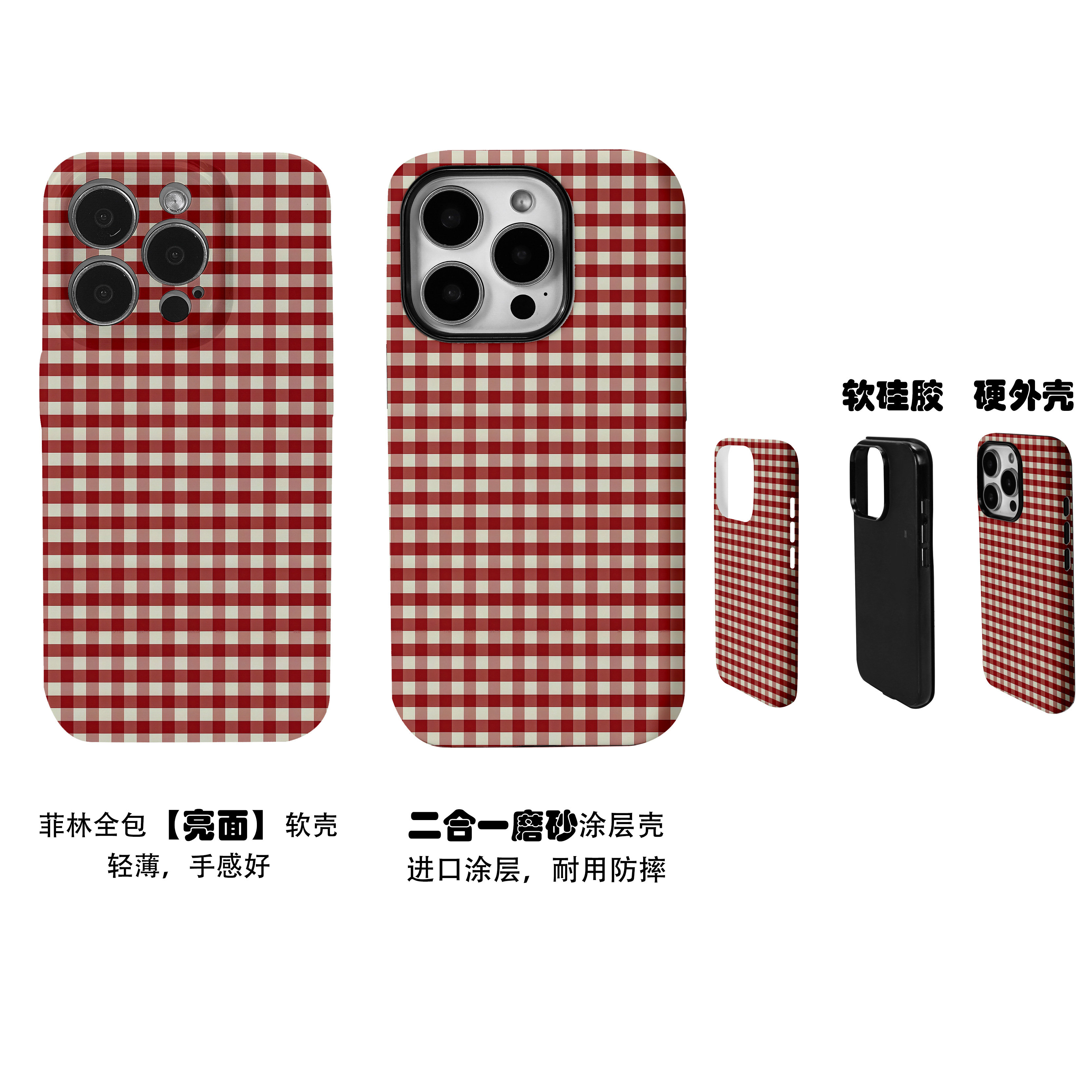 红色复古棋盘格子创意菲林二合一手机壳适用苹果17nova14华为p70mate60小米15opporen14ovivo荣耀300iPhone16