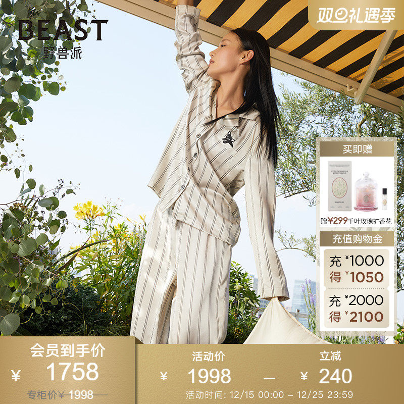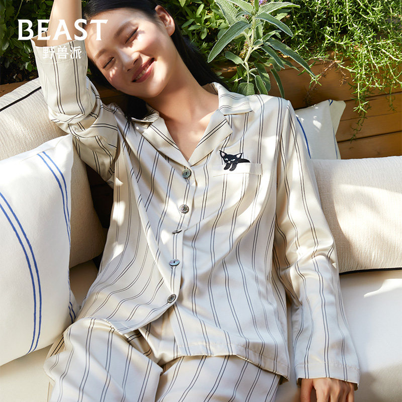 明星同款BEAST野兽派躲猫猫印花真丝情侣睡衣生日新婚圣诞礼物
