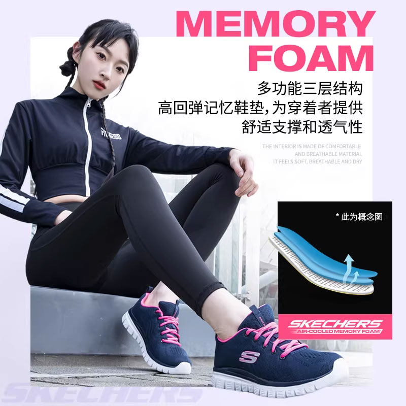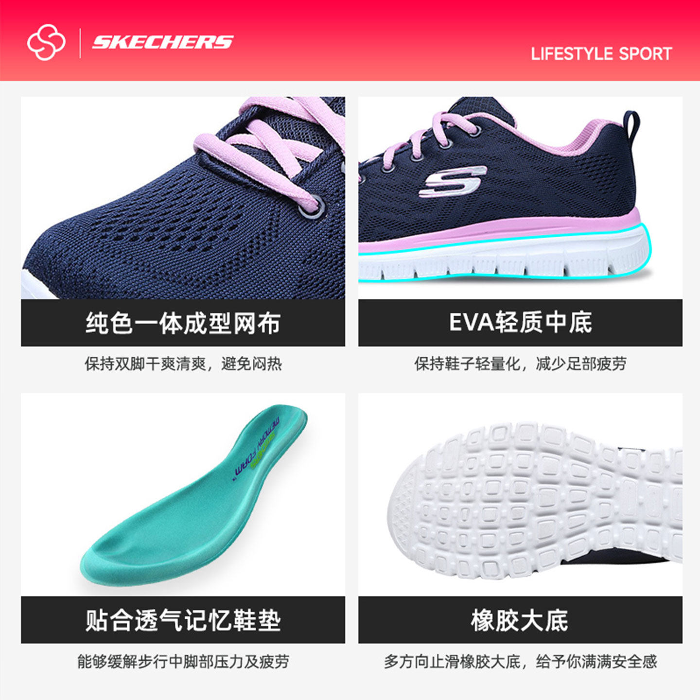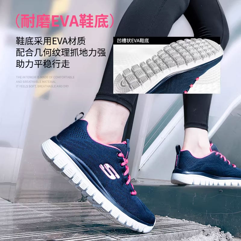 斯凯奇女鞋夏季新款网面透气跑步鞋轻便妈妈鞋软底老人鞋运动鞋