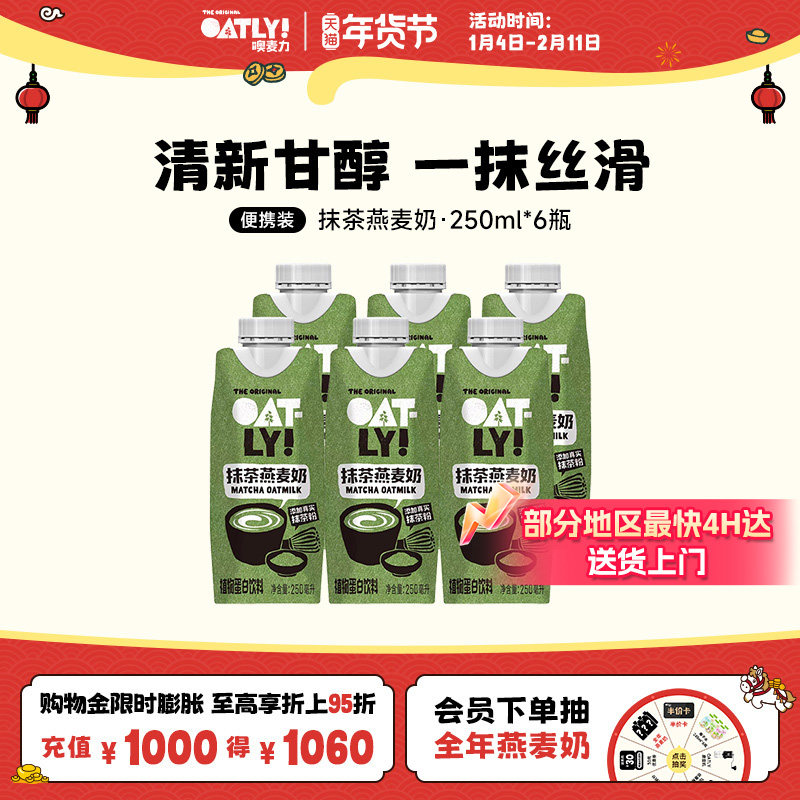 OATLY新品抹茶燕麦奶早餐奶植物蛋白饮料牛奶豆奶替代