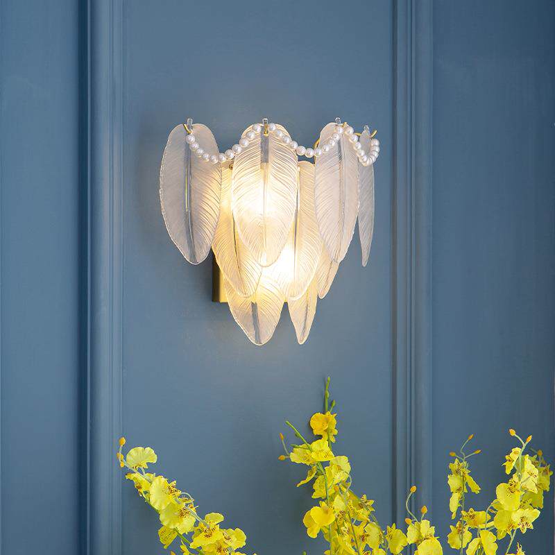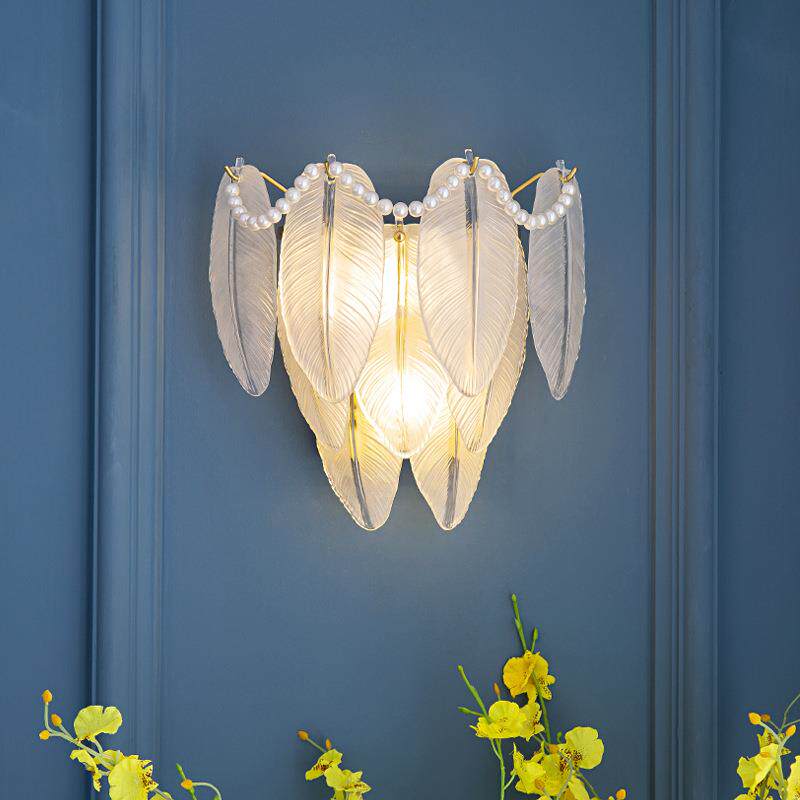 法式奶油风羽毛壁灯主卧室床头灯简约现代客厅背景墙壁灯网红灯具