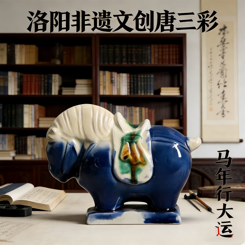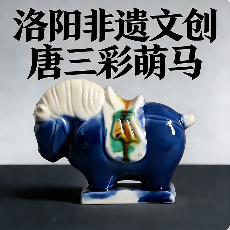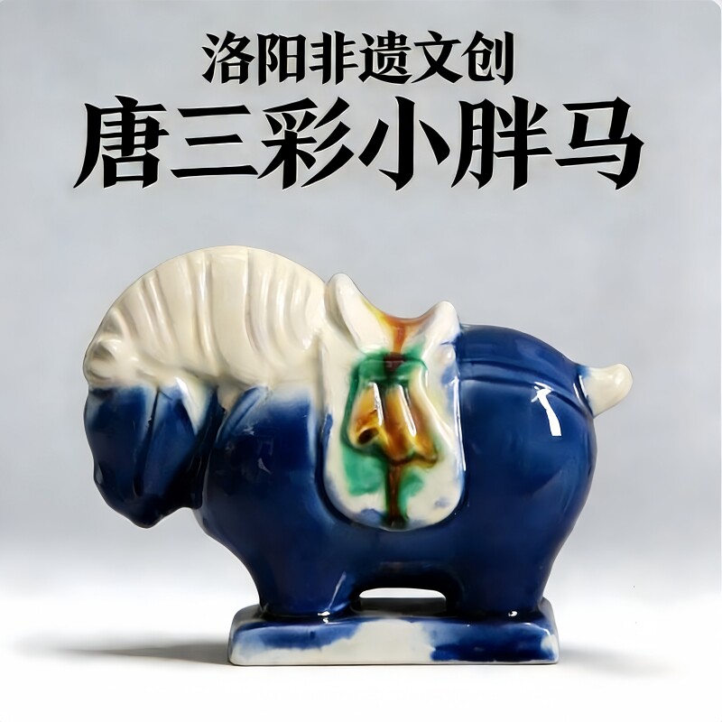 洛阳唐三彩陶瓷佛系胖马文创艺术品手办小胖马旅游伴手桌面装饰品