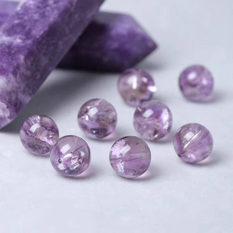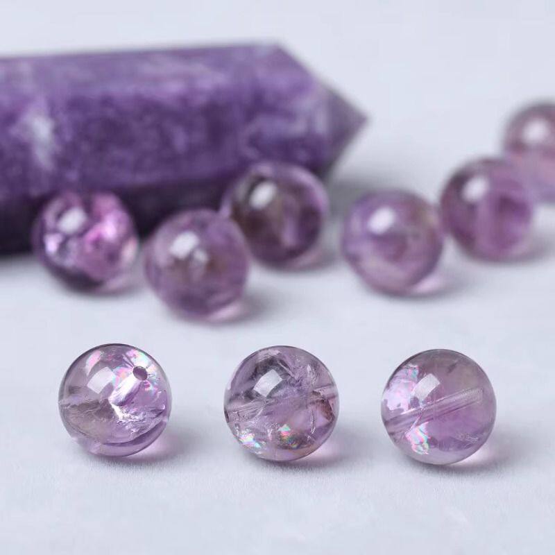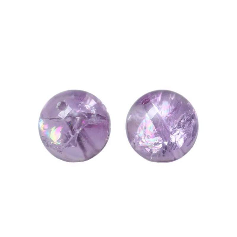 7A天然紫阿赛紫水晶散珠子手串男女士手链七彩冰裂胶花diy手工