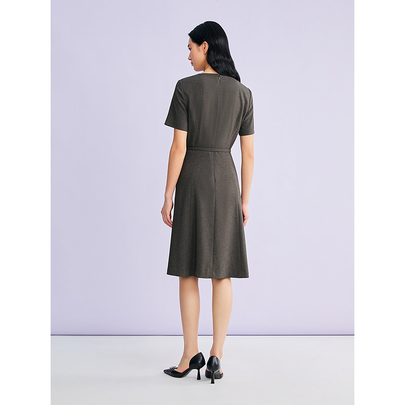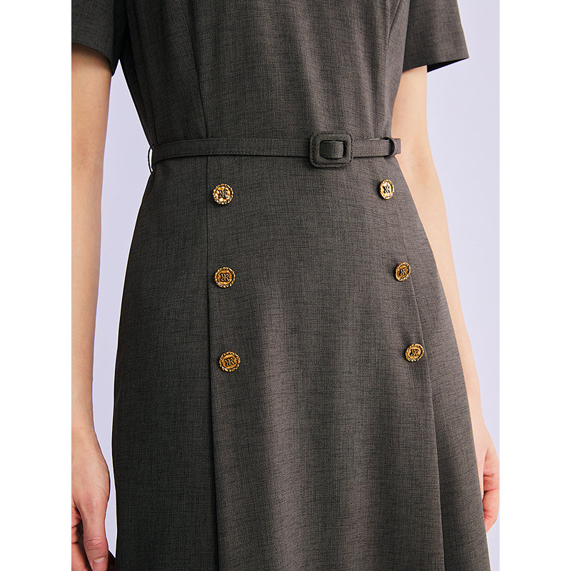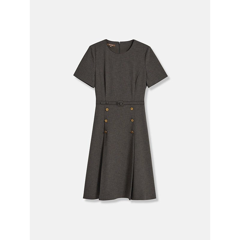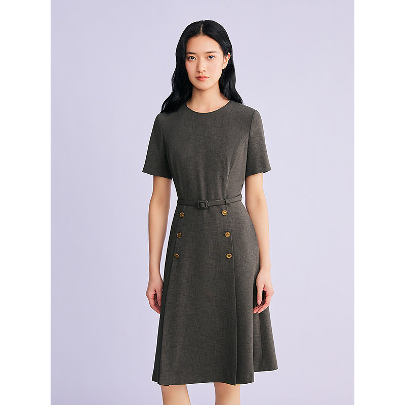 YINER音儿专选2026春季新款优雅时尚简约圆领腰带收腰A摆连衣裙