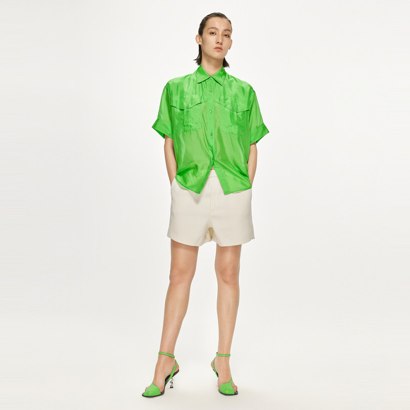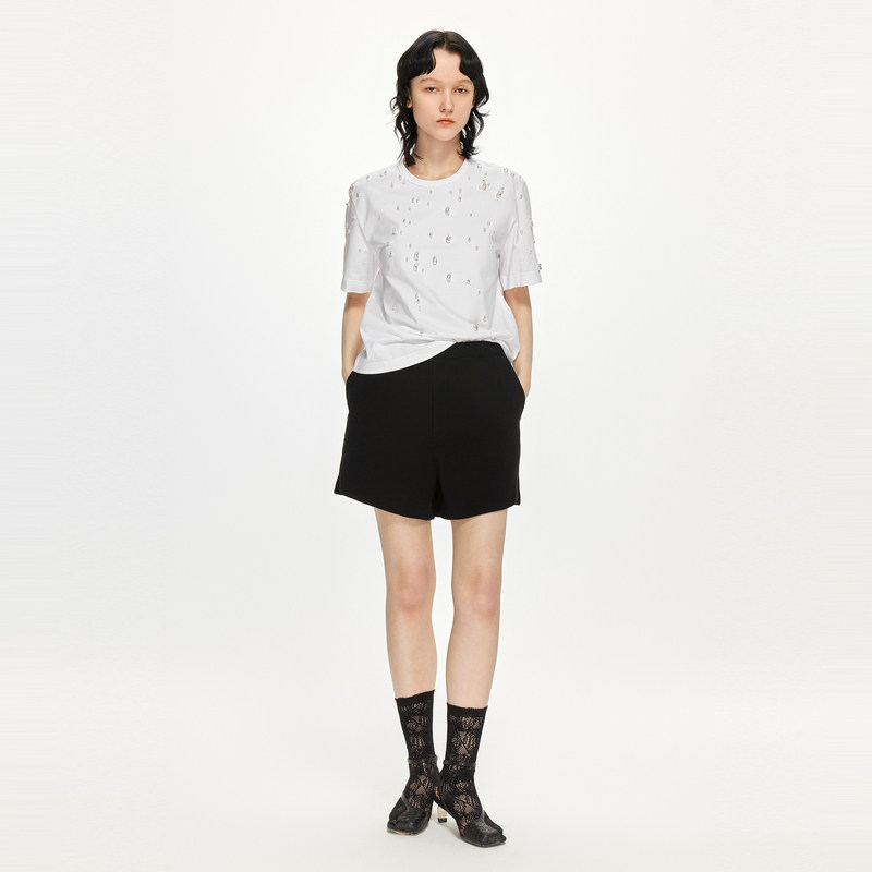 JNBY/江南布衣折扣春夏高腰短裤女宽松阔腿裤纯色休闲裤通勤A型