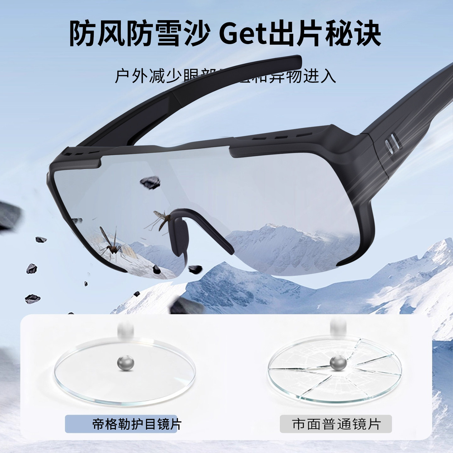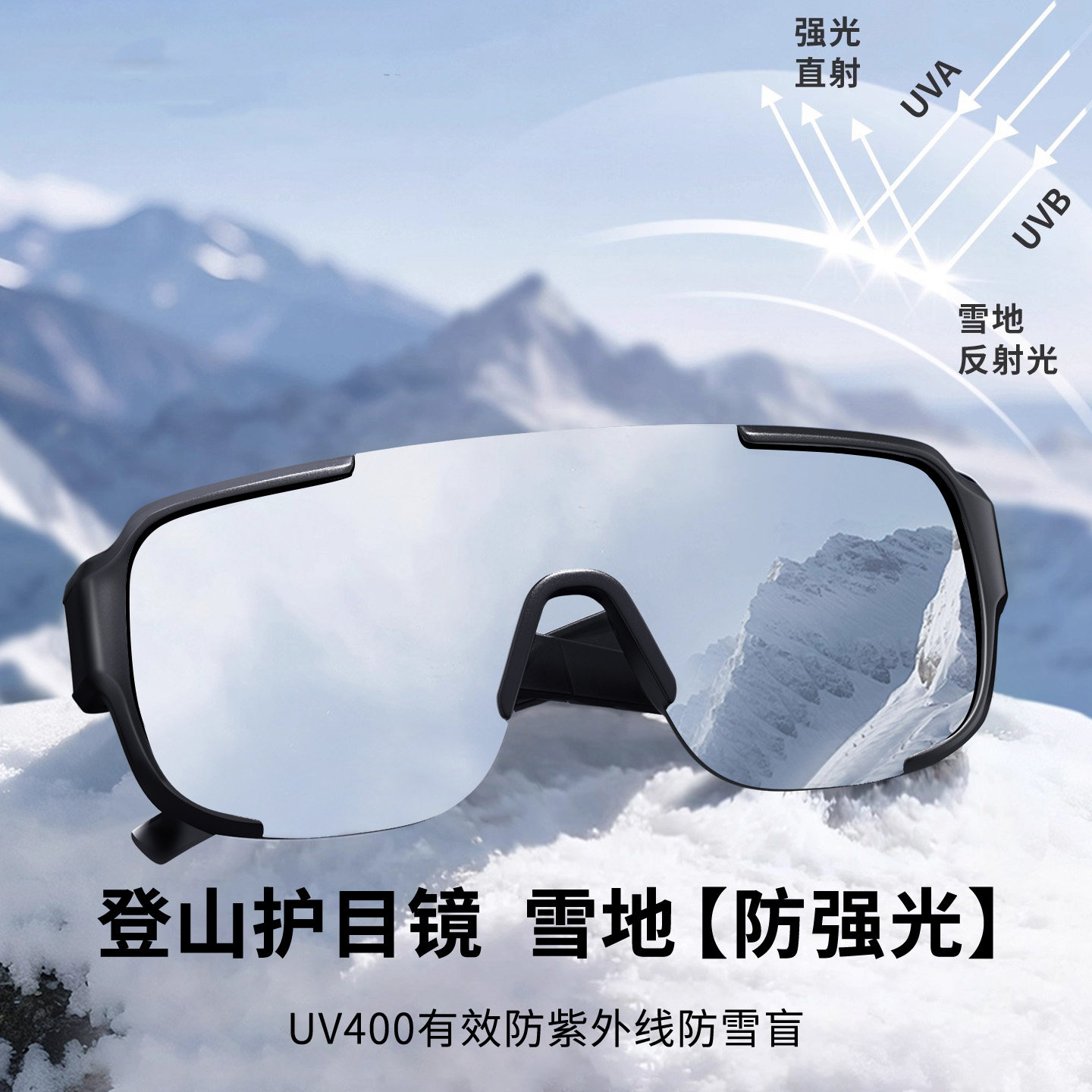 登山护目镜墨镜可套近视镜可戴套镜防风雪镜雪山骑行眼镜雪地偏光