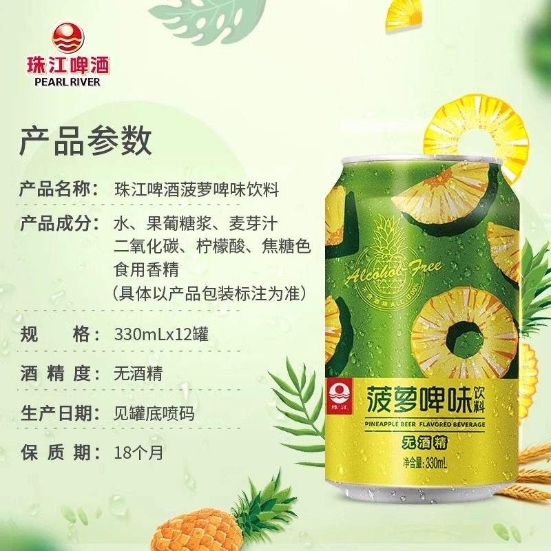 珠江菠萝啤味饮料12罐*330mL 啤酒风味果啤无酒精国产经典罐装