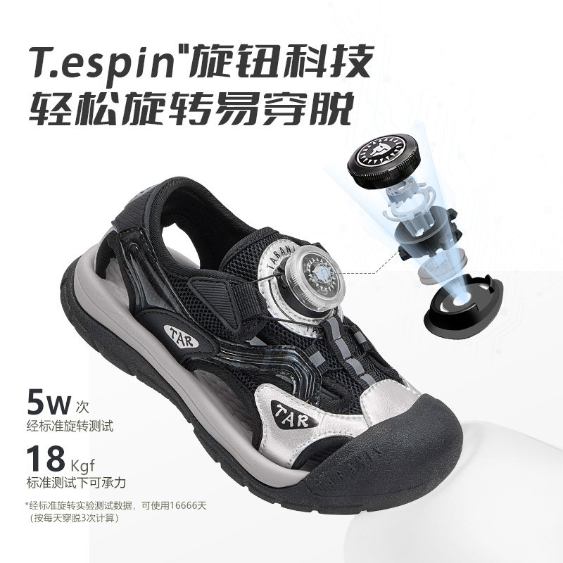 泰兰尼斯夏季儿童凉鞋包头防滑运动凉鞋旋钮溯溪鞋男童休闲沙滩鞋